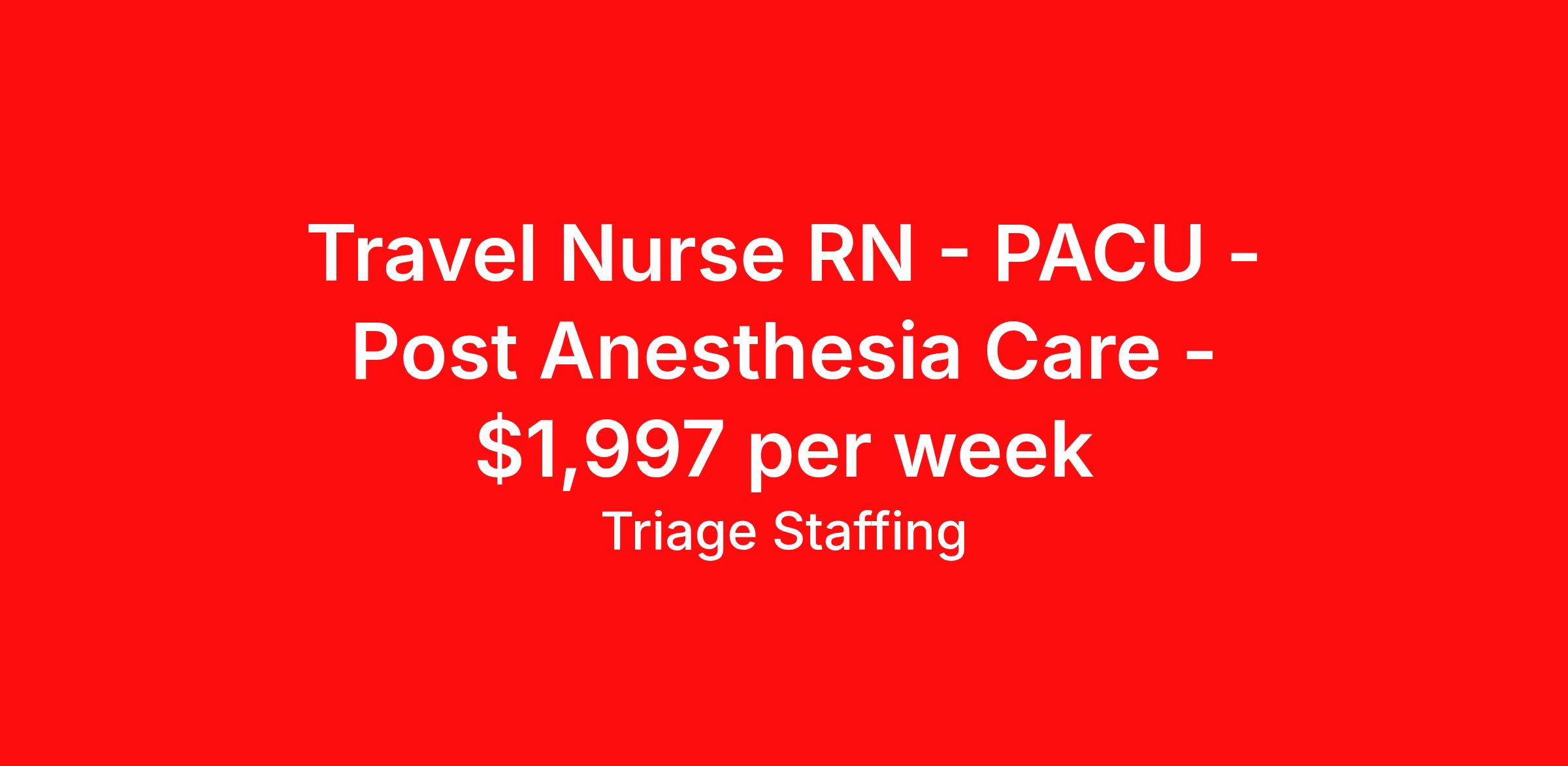 Travel Nurse RN - PACU - Post Anesthesia Care - $1,997 per week