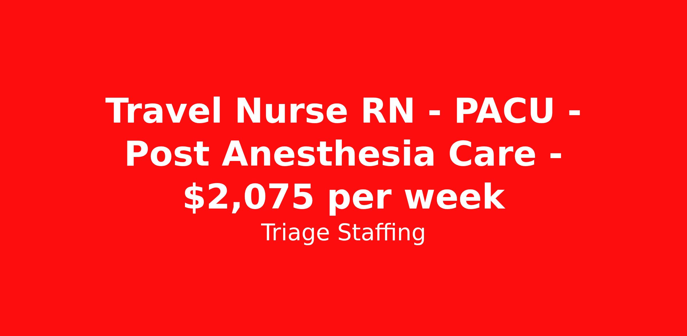Travel Nurse RN - PACU - Post Anesthesia Care - $2,075 per week