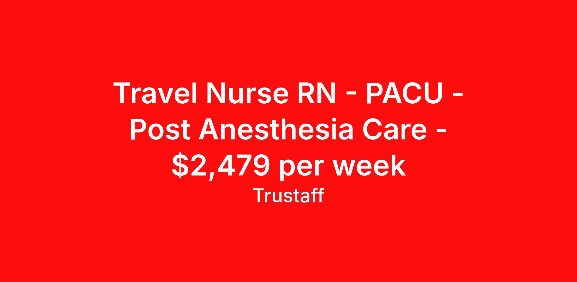 Travel Nurse RN - PACU - Post Anesthesia Care - $2,479 per week