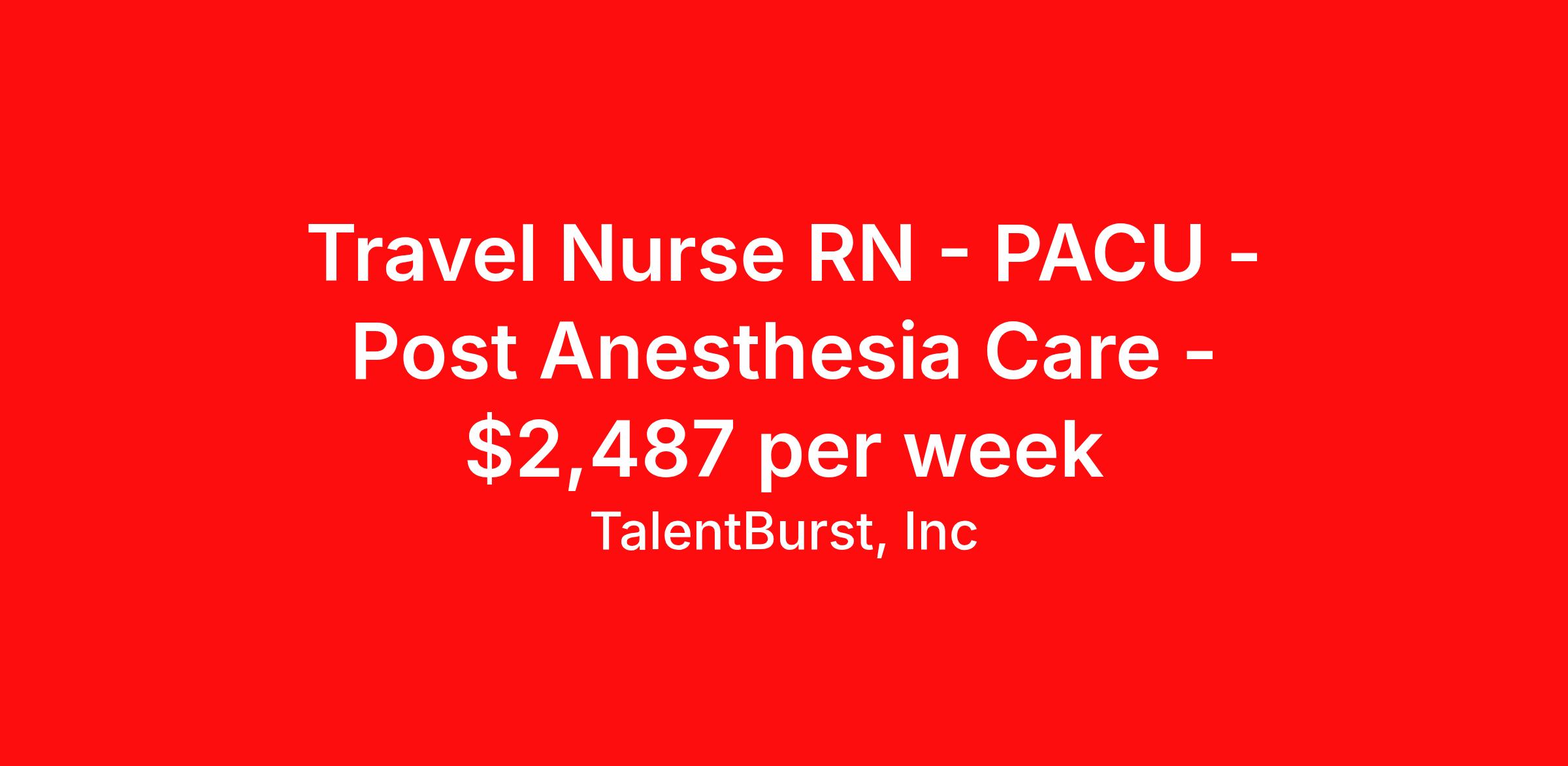 Travel Nurse RN - PACU - Post Anesthesia Care - $2,487 per week
