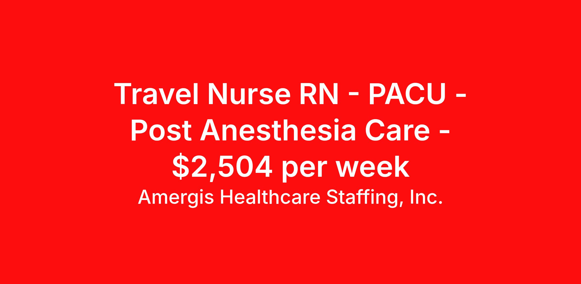 Amergis Healthcare Staffing, Inc. is seeking a travel nurse RN PACU - Post Anesthesia Care for a travel nursing job in Midland, Texas. Job Description & Requirements Specialty: PACU - Post Anesthesia Care Discipline: RN Duration: 13 weeks 40 hours per week Shift: 8 hours Employment Type: Travel The post-anesthesia care Unit (PACU) nurse cares for patients who have under gone anesthesia. The post-anesthesia care Unit (PACU) nurse is responsible for observing and treating a patient postoperation and making sure that they safely awake from anesthesia. The PACU nurse must monitor vital signs and levels of consciousness to make sure that the sedation is wearing off properly, there are no adverse reactions occurring and patients are regaining consciousness. Essential Duties and Responsibilities: Coordinates patient care. Communicates with surgeon and anesthesiologist continuously as needed about patient conditions; receives direction for patient management. Intercedes to maintain optimum homeostasis Demonstrates knowledge of perioperative factors that alter immediate postoperative phase. Utilizes nursing procedures as a media for communication and interaction with patient Identifies physical symptoms/changes and takes appropriate action in a timely manner Demonstrates knowledge of airway management and procedures and the ability to use the equipment Demonstrates ability to assess cardio-respiratory systems for changes and provide appropriate treatment Observes behavioral and physiologic changes due to medications; takes appropriate action and documents Adjusts and acts upon expectations of patient's behavior according to the effect medication has on the patient Demonstrates ability to adequately assess and reassess pain and uses appropriate pain management techniques Demonstrates knowledge of anesthetic drugs, actions and side effects Demonstrates knowledge of arterial lines, central lines, spinal/epidural catheters and how to document Carries out medical/surgical asepsis during treatments and special procedures Carries out established techniques for safe administration of medications and parenteral fluids, according to hospital policy and procedure Carries out safety measures to prevent patient from harming self or others Provides explanations and teaching to patient/family, as necessary Protects patient's sensitivities and right to privacy; maintains confidentiality at all times Other duties as assigned Minimum Requirements: Current RN licensure in the state in which RN is working. ACLS and PALS certification per contract requirements. Complies with all relevant professional standards of practice Participation and completion of Amergis' Competency program when applicable Current CPR if applicable TB Questionnaire, PPD or chest x-ray if applicable Current Health certificate (per contract or state regulation) Must meet all federal, state and local requirements Successful completion of new hire training as applicable to job site Understand patient confidentiality and HIPAA requirements Ability to effectively elicit/provide information to and from appropriate individuals (including, but not limited to, supervisors, co-workers, clients) via strong communication skills; proficiency in the English language is required Computer proficiency required Must be at least 18 years of age Benefits At Amergis, we firmly believe that our employees are the heartbeat of our organization and we are happy to offer the following benefits: Competitive pay & weekly paychecks Health, dental, vision, and life insurance 401(k) savings plan Awards and recognition programs *Benefit eligibility is dependent on employment status. About Amergis Amergis, formerly known as Maxim Healthcare Staffing, has served our clients and communities by connecting people to the work that matters since 1988. We provide meaningful opportunities to our extensive network of healthcare and school-based professionals, ready to work in any hospital, government facility, or school. Through partnership and innovation, Amergis creates unmatched staffing experiences to deliver the best workforce solutions. Amergis is an equal opportunity/affirmative action employer. All qualified applicants will receive consideration for employment without regard to sex, gender identity, sexual orientation, race, color, religion, national origin, disability, protected Veteran status, age, or any other characteristic protected by law. Amergis Job ID 1098574. Pay package is based on 8 hour shifts and 40 hours per week (subject to confirmation) with tax-free stipend amount to be determined. Posted job title: RN PACU About Amergis Healthcare Staffing, Inc. Amergis, formerly known as Maxim Healthcare Staffing, has served our clients and communities by connecting people to the work that matters since 1988. We provide meaningful opportunities to our extensive network of healthcare and school-based professionals, ready to work in any hospital, government facility, or school. Through partnership and innovation, Amergis creates unmatched staffing experiences to deliver the best workforce solutions.