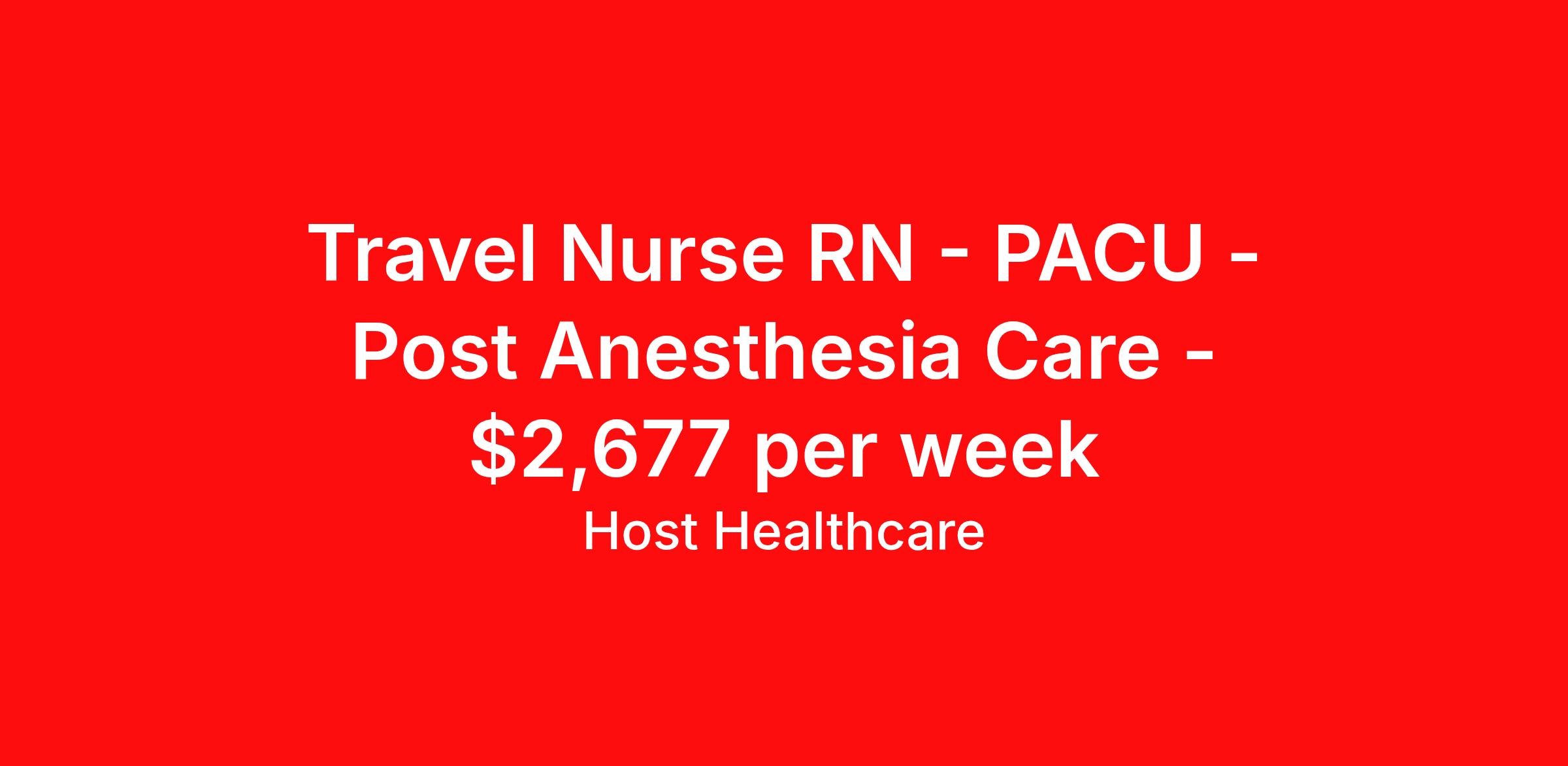 Travel Nurse RN - PACU - Post Anesthesia Care - $2,677 per week