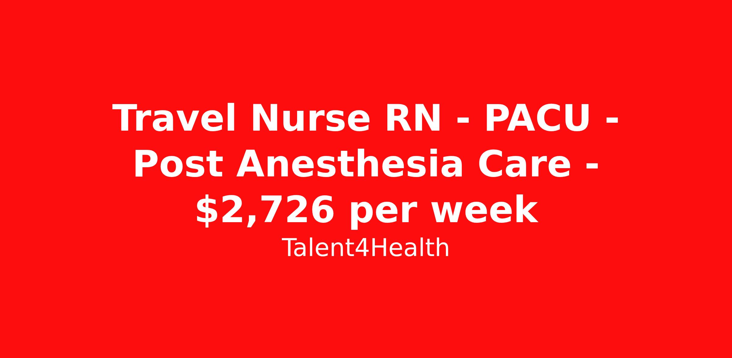 Travel Nurse RN - PACU - Post Anesthesia Care - $2,726 per week