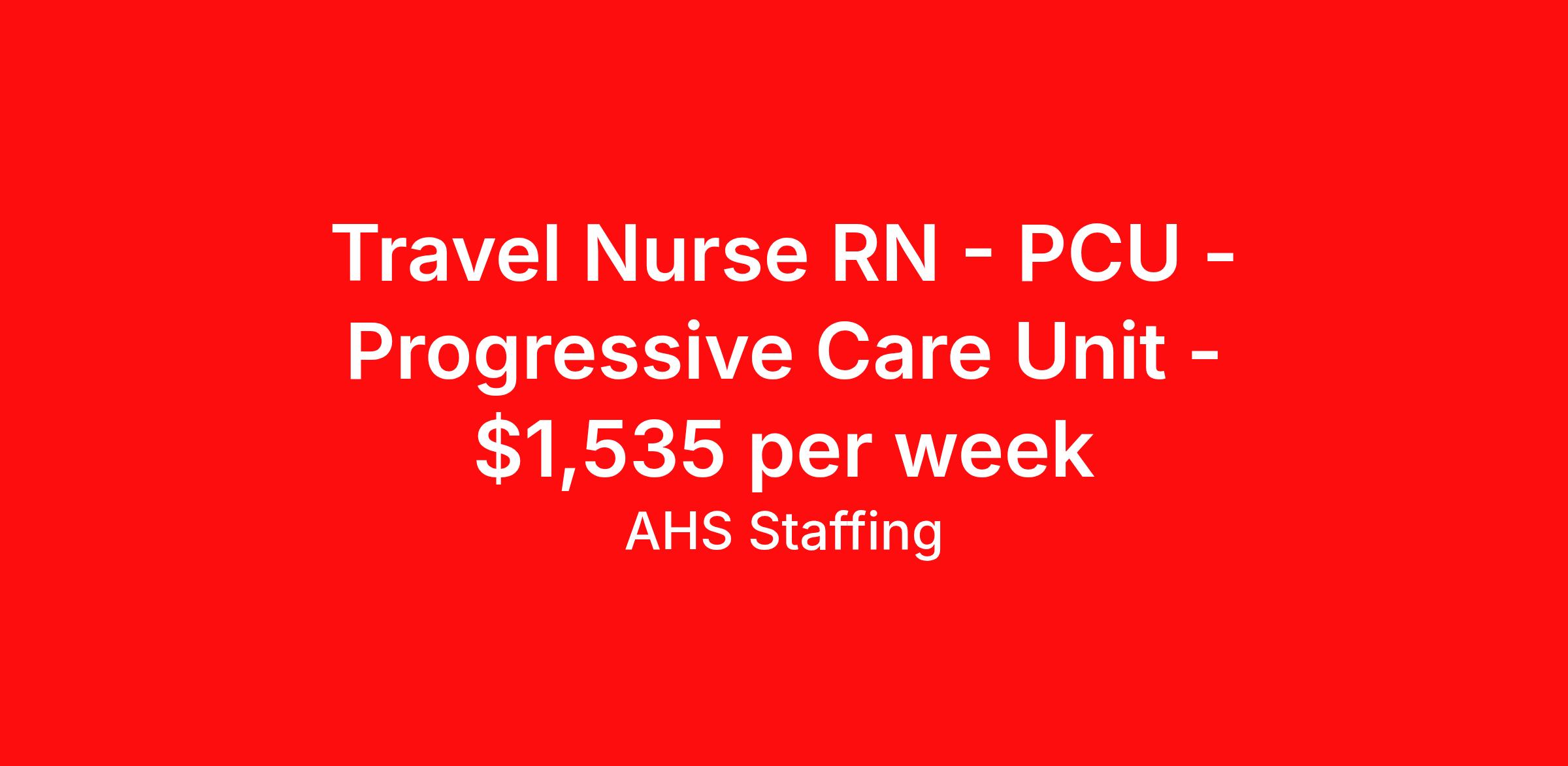 Travel Nurse RN - PCU - Progressive Care Unit - $1,535 per week