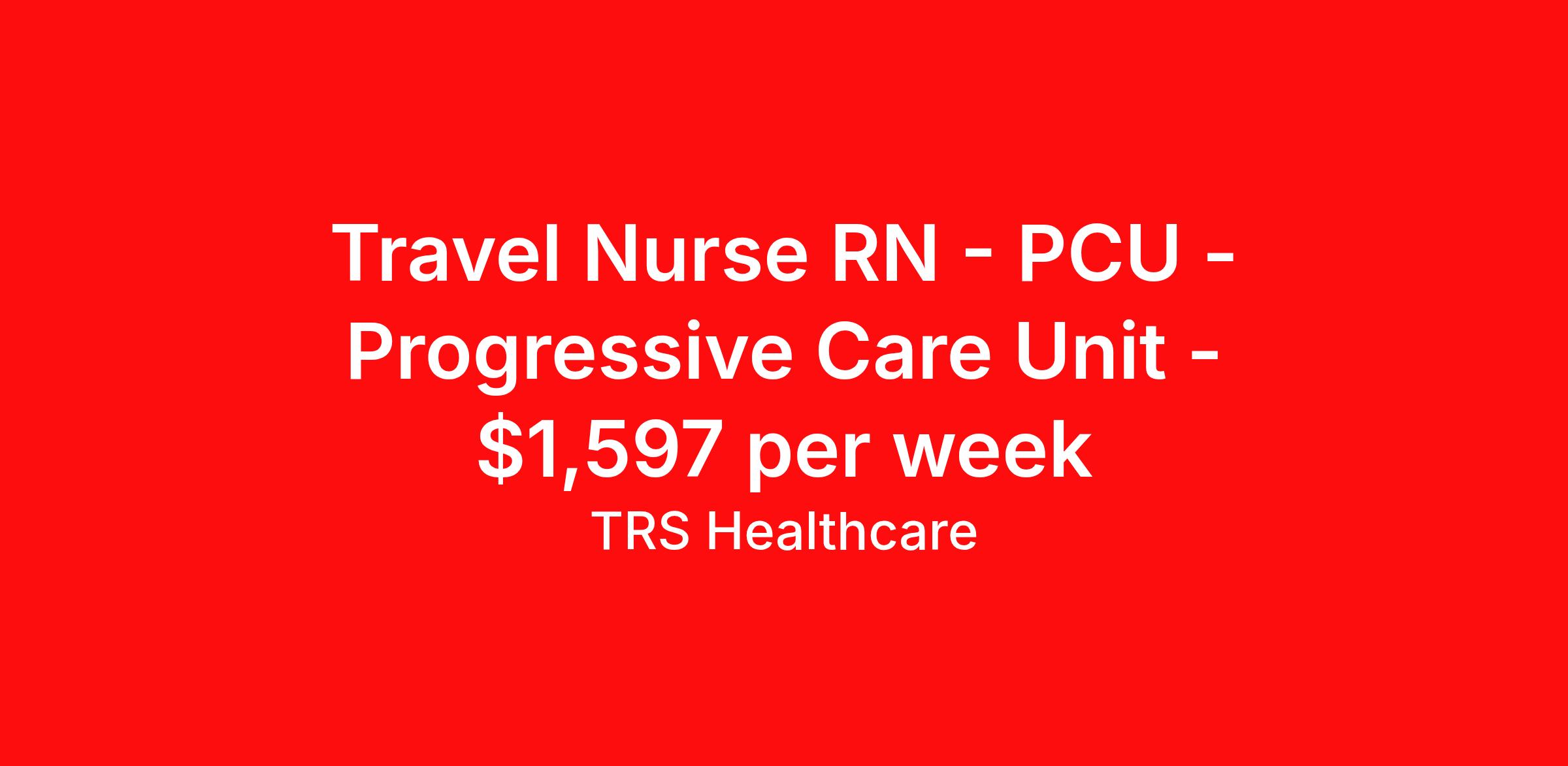 Travel Nurse RN - PCU - Progressive Care Unit - $1,597 per week