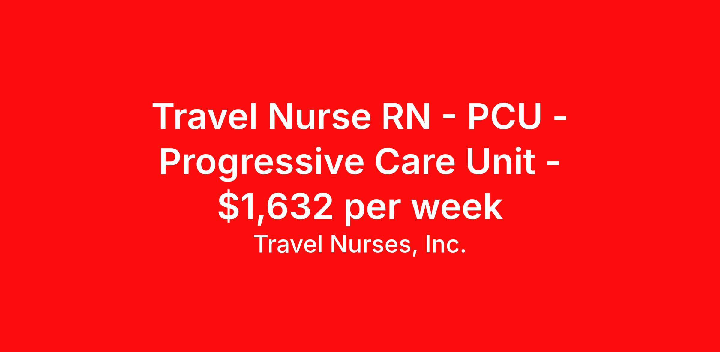 Travel Nurses, Inc. is seeking a travel nurse RN PCU - Progressive Care Unit for a travel nursing job in Orangeburg, South Carolina. Job Description & Requirements Specialty: PCU - Progressive Care Unit Discipline: RN Start Date: 04/07/2026 Duration: 13 weeks 36 hours per week Shift: 12 hours Employment Type: Travel Travel Nurses, Inc. Job ID 309181. Pay package is based on 12 hour shifts and 36 hours per week (subject to confirmation) with tax-free stipend amount to be determined. Posted job title: Step down Registered Nurse About Travel Nurses, Inc. Travel Nurses, Inc. is a leading healthcare staffing agency that provides healthcare professionals with opportunities to work across the country. Founded by nurses in 1988, TNI has more than 30 years of experience in the industry. The agency initially focused on staffing operating room settings in the MidSouth. However, this quickly evolved to encompass all nursing specialties and allied health fields nationwide. At the heart of our mission is a profound respect for nurses, whom we consider the cornerstone of healthcare. This acknowledgment extends beyond the nursing profession alone. Travel Nurses, Inc. now proudly embraces a wide array of healthcare professionals, recognizing their crucial roles in our collective mission. Travel Nurses, Inc. is dedicated to providing comprehensive support and opportunities that will help facilitate complete career mobility in the healthcare field. Our commitment to transparency ensures that all professionals, not just nurses, can confidently accept any assignment without financial uncertainties. We prioritize our professionals’ well-being with comprehensive benefits packages, including day-one healthcare coverage, competitive salaries, bonuses and incentives. This underscores our unwavering commitment to offering the best possible rewards and support for all the professionals we serve. Benefits Weekly pay Continuing Education 401k retirement plan Wellness and fitness programs Mileage reimbursement Referral bonus Employee assistance programs Medical benefits Dental benefits Vision benefits Benefits start day 1 License and certification reimbursement Life insurance Retention bonus