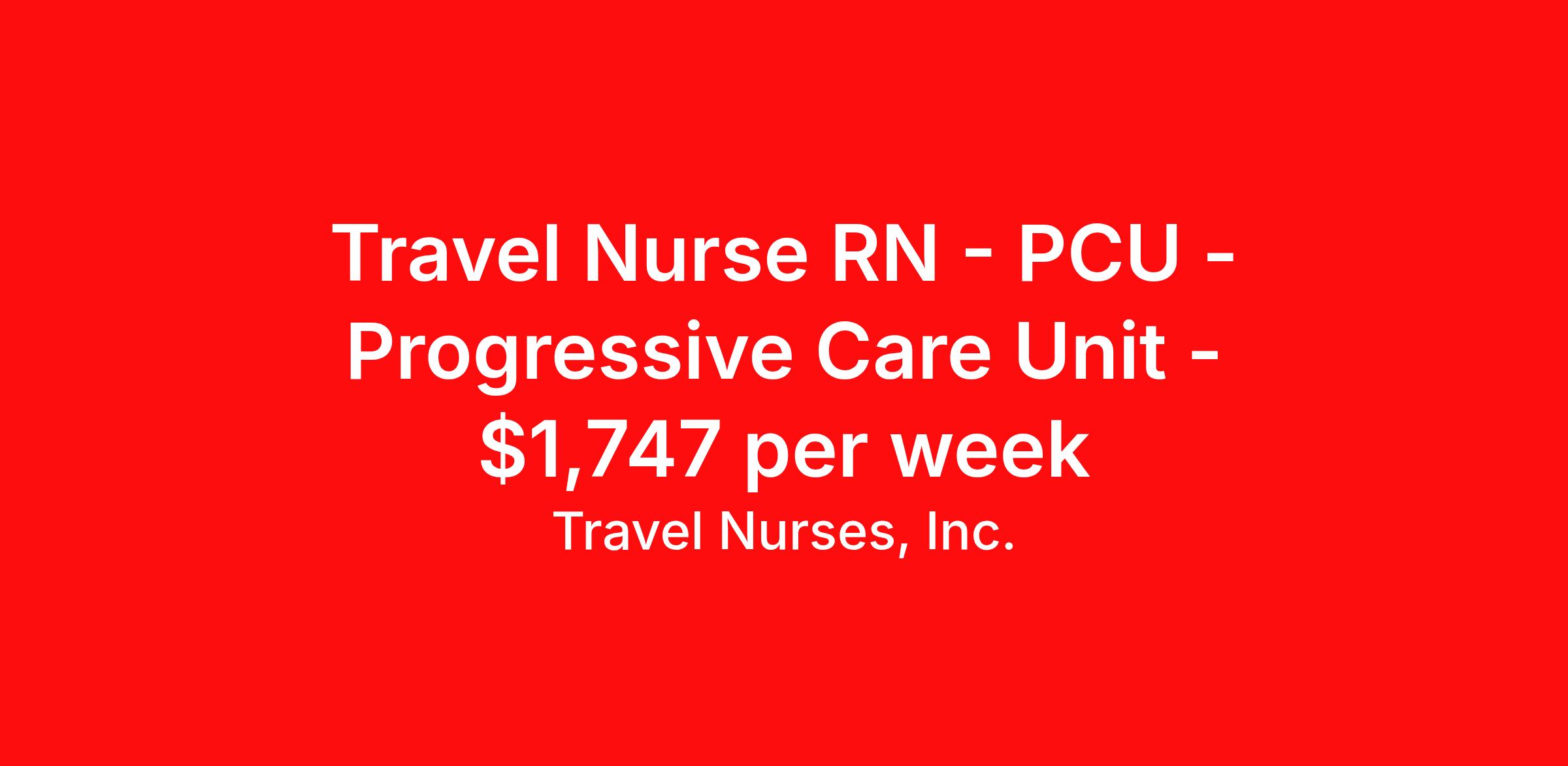 Travel Nurses, Inc. is seeking a travel nurse RN PCU - Progressive Care Unit for a travel nursing job in Pocatello, Idaho. Job Description & Requirements Specialty: PCU - Progressive Care Unit Discipline: RN Start Date: ASAP Duration: 13 weeks 36 hours per week Shift: 12 hours Employment Type: Travel Travel Nurses, Inc. Job ID 304210. Pay package is based on 12 hour shifts and 36 hours per week (subject to confirmation) with tax-free stipend amount to be determined. Posted job title: PCU Registered Nurse About Travel Nurses, Inc. Travel Nurses, Inc. is a leading healthcare staffing agency that provides healthcare professionals with opportunities to work across the country. Founded by nurses in 1988, TNI has more than 30 years of experience in the industry. The agency initially focused on staffing operating room settings in the MidSouth. However, this quickly evolved to encompass all nursing specialties and allied health fields nationwide. At the heart of our mission is a profound respect for nurses, whom we consider the cornerstone of healthcare. This acknowledgment extends beyond the nursing profession alone. Travel Nurses, Inc. now proudly embraces a wide array of healthcare professionals, recognizing their crucial roles in our collective mission. Travel Nurses, Inc. is dedicated to providing comprehensive support and opportunities that will help facilitate complete career mobility in the healthcare field. Our commitment to transparency ensures that all professionals, not just nurses, can confidently accept any assignment without financial uncertainties. We prioritize our professionals’ well-being with comprehensive benefits packages, including day-one healthcare coverage, competitive salaries, bonuses and incentives. This underscores our unwavering commitment to offering the best possible rewards and support for all the professionals we serve. Benefits Weekly pay Continuing Education 401k retirement plan Wellness and fitness programs Mileage reimbursement Referral bonus Employee assistance programs Medical benefits Dental benefits Vision benefits Benefits start day 1 License and certification reimbursement Life insurance Retention bonus