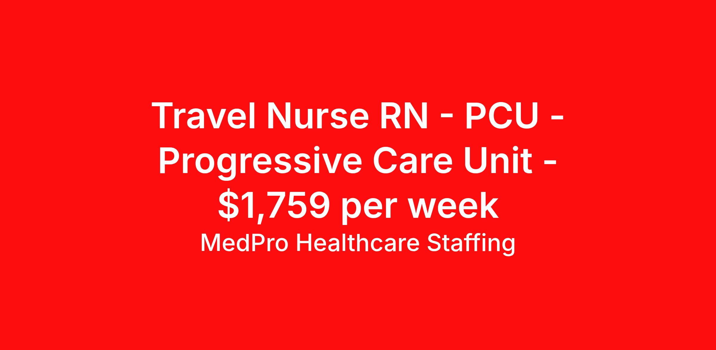 MedPro Healthcare Staffing is seeking a travel nurse RN PCU - Progressive Care Unit for a travel nursing job in High Point, North Carolina. Job Description & Requirements Specialty: PCU - Progressive Care Unit Discipline: RN Start Date: 04/06/2026 Duration: 13 weeks 36 hours per week Shift: 12 hours, days Employment Type: Travel MedPro Healthcare Staffing , a Joint Commission-certified staffing agency, is seeking a quality PCU/Step-down Nurse for a travel assignment with one of our top healthcare clients. Requirements Active RN License Degree from accredited nursing program BLS & ACLS Certifications Eighteen months of recent experience in an Acute Care PCU/Step-down setting Other requirements to be determined by our client facility Benefits Weekly pay and direct deposit Full coverage of all credentialing fees Private housing or housing allowance Group Health insurance for you and your family Company-paid life and disability insurance Travel reimbursement 401(k) matching Unlimited Referral Bonuses up to $1,000 Duties Responsibilities Progressive Care Nurses (PCU) care for patients requiring close monitoring and frequent assessment, but who aren't unstable enough to need ICU care. PCU nurses monitor cardiac and other critical vital signs and detect any changes, thereby enabling intervention of life-threatening or emergency situations. Many PCU patients receive complex medications that may require titration based on the patient’s vital signs The PCU nurse is sometimes also called a step-down nurse and the PCU is also known as cardiac step-down, medical step-down, neuro step-down, surgical step-down and ER holding. Monitor and assess patients who aren't unstable enough to need ICU care. Utilize computer equipment to monitor cardiac and other vital information and detect any changes, thereby enabling intervention of life-threatening or emergency situations. About Agency MedPro Healthcare Staffing is a Joint Commission certified provider of contract staffing services. Since 1983, we have placed nursing and allied travelers in top healthcare facilities nationwide. Join us today for your very own MedPro Experience®. If qualified and interested, please call for immediate consideration. MedPro Staffing is an Equal Opportunity Employer. All applicants will be considered for employment without attention to race, color, religion, national origin, age, sex, disability, marital status or veteran status. Key Words: PCU Nurse, RN-Progressive Care, Telemetry Nursing positions, Step-down, Stepdown, Travel Nurse, Contract Nurse, Agency Nurse, EKG, Tele, Telemetry Contracts, Registered Nurse, Telemetry Nurse, Tele Nurse, RN, Registered Nurse, Telemetry Nurse, RN-Tele, Travel Nursing *Weekly payment estimates are intended for informational purposes only and include a gross estimate of hourly wages and reimbursements for meal, incidental, and housing expenses. Your recruiter will confirm your eligibility and provide additional details. MedPro Job ID a0Fcx00000IDPizEAH. Pay package is based on 12 hour shifts and 36 hours per week (subject to confirmation) with tax-free stipend amount to be determined. Posted job title: PCU/Step-down Nurse Nursing: PCU. About MedPro Healthcare Staffing At MedPro Healthcare Staffing , we believe no one cares more for caregivers than we do. Our mission is simple: you focus on your patients, and we’ll take care of the rest. As a Joint Commission-certified leader in temporary and contract healthcare staffing since 1983, MedPro has proudly connected nursing and allied travelers with top healthcare facilities across the nation. With thousands of job opportunities available nationwide, we make it easy to find assignments that align with your goals and lifestyle. Our on-staff clinical support team—alongside a compassionate group of experienced recruiters—provides hands-on guidance every step of the way. From Day 1 medical benefits and a 401(k) plan to personalized career support, we’re committed to ensuring every professional we serve feels valued, cared for, and empowered to succeed. Guided by a CEO who is a Registered Nurse, MedPro is built on a foundation of clinical insight and genuine compassion for the caregiving community. Through The MedPro Experience® , we deliver travel assignments that are rewarding, memorable, and designed to help you DREAM big, EXPLORE often, and ACHIEVE greatness. Benefits Day 1 medical, dental, and vision benefits for you and your family Weekly pay and direct deposit Unlimited Referral Bonuses starting at $500 On Staff Clinical Support Team Access to nationwide travel assignments MPX Mobile app -24/7 real-time access to jobs, credentials, assignment details, and more Full coverage of all credentialing fees Private housing or housing allowance Tax Free Per Diems, Housing Stipends and Travel Reimbursements Company-paid life and disability insurance Travel reimbursement 401(k) matching Benefits Weekly pay Referral bonus Employee assistance programs