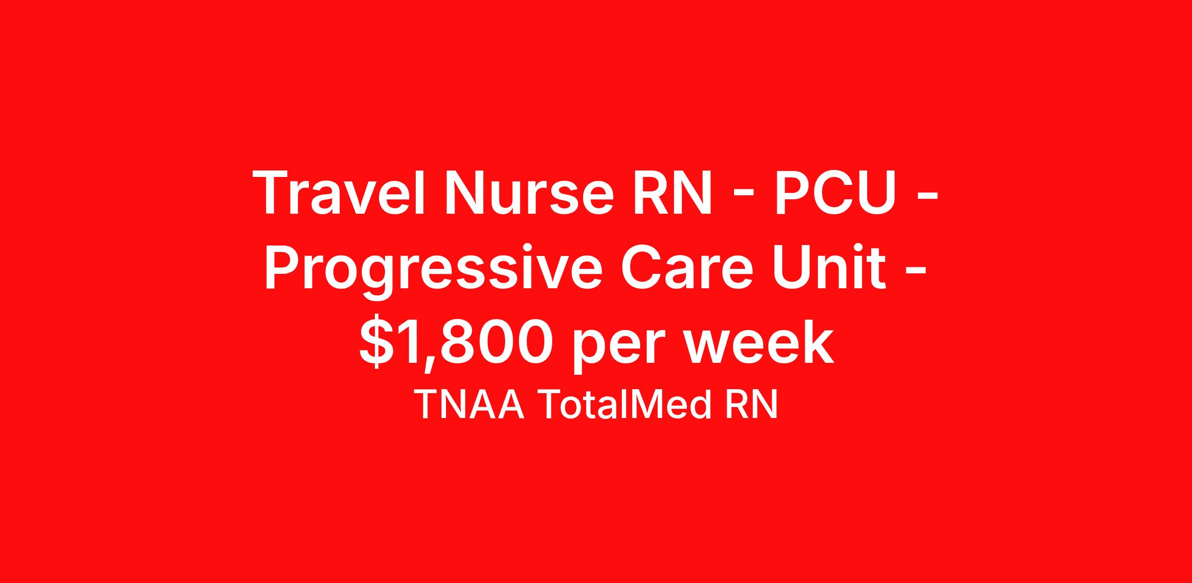Travel Nurse RN - PCU - Progressive Care Unit - $1,800 per week
