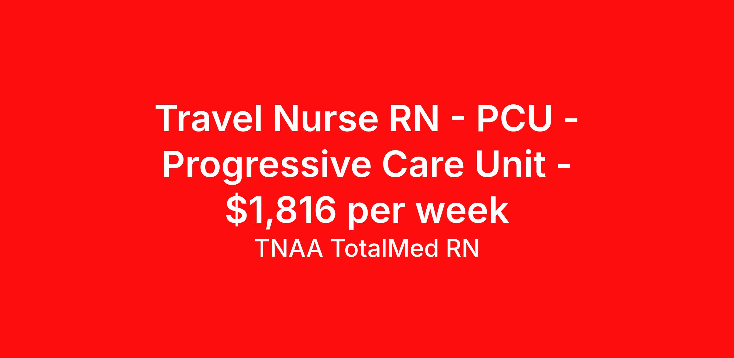 Travel Nurse RN - PCU - Progressive Care Unit - $1,816 per week