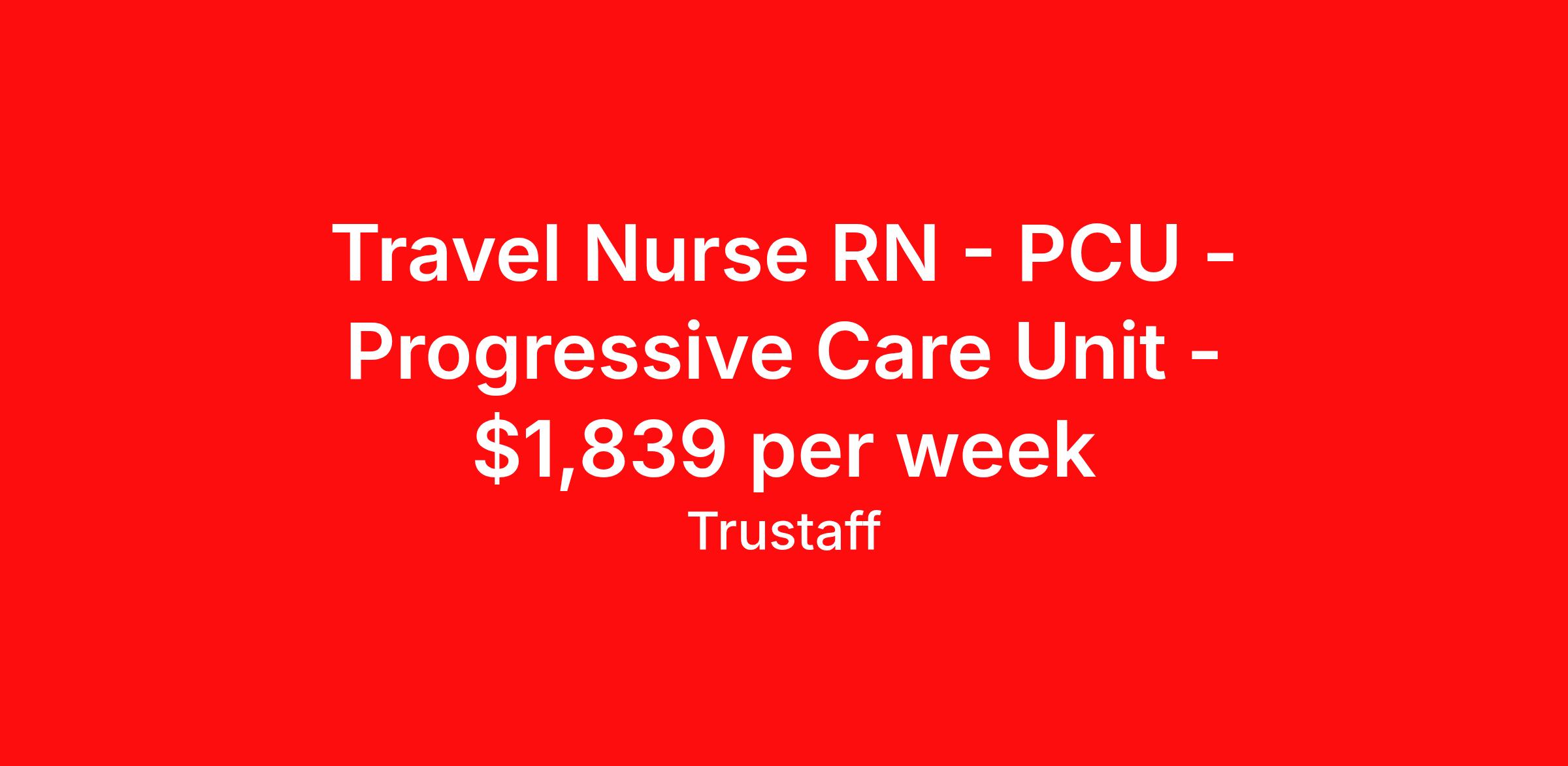 Travel Nurse RN - PCU - Progressive Care Unit - $1,839 per week
