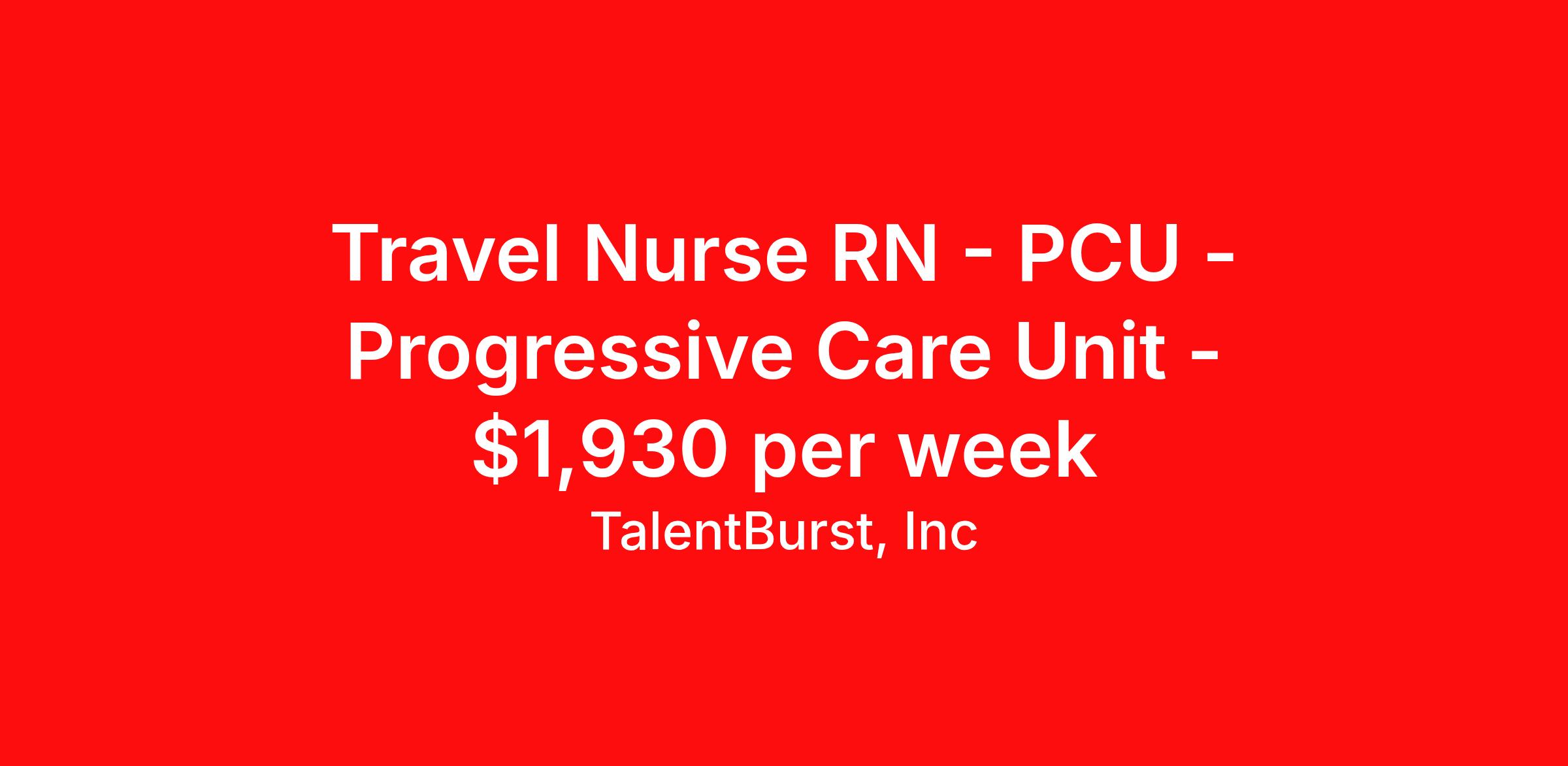 Travel Nurse RN - PCU - Progressive Care Unit - $1,930 per week
