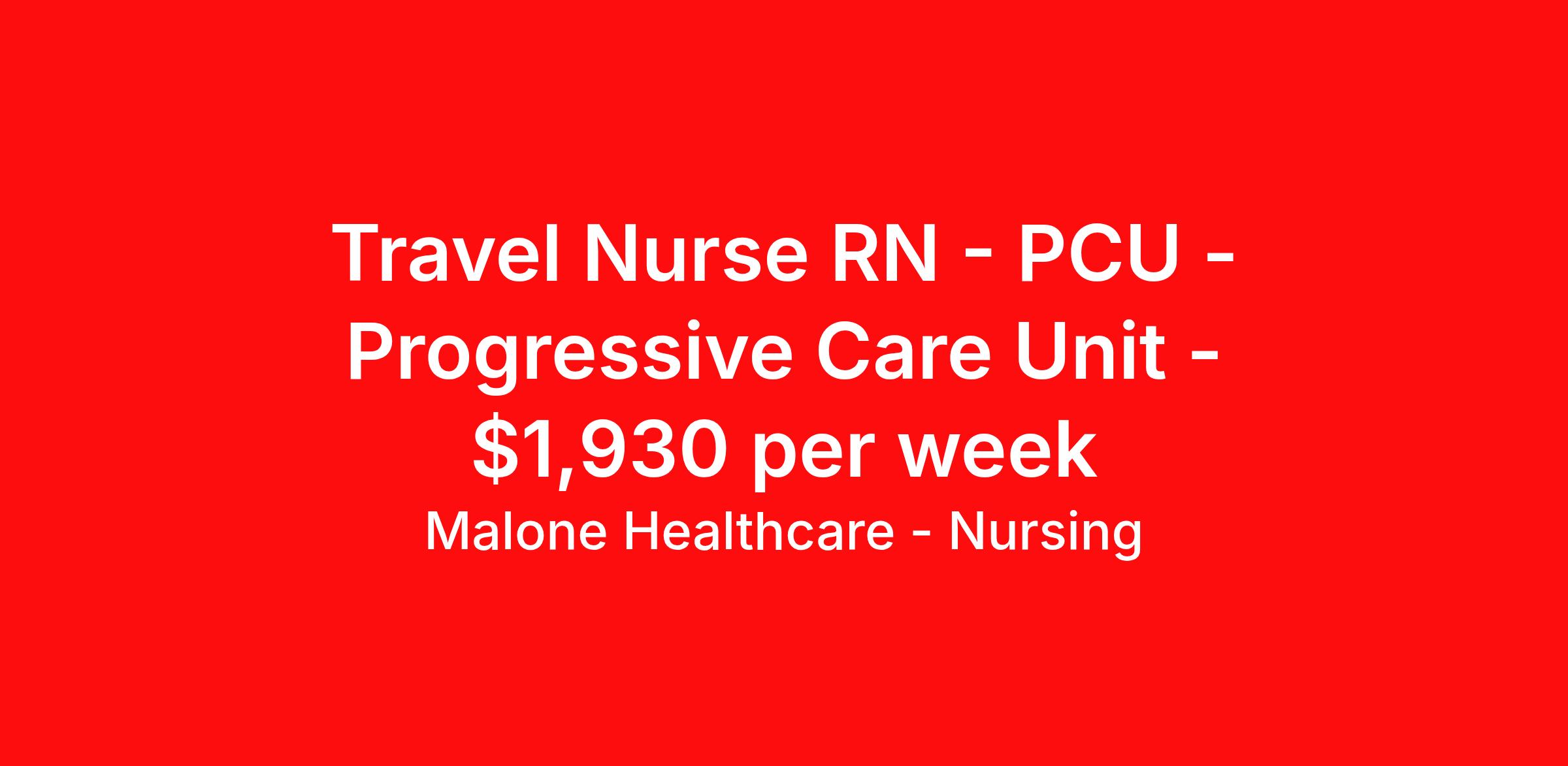 Malone Healthcare - Nursing is seeking a travel nurse RN PCU - Progressive Care Unit for a travel nursing job in Burlington, North Carolina. Job Description & Requirements Specialty: PCU - Progressive Care Unit Discipline: RN Start Date: ASAP Duration: 13 weeks 36 hours per week Shift: 12 hours, nights Employment Type: Travel Cardiac PCU RN – Nights (3x12s) Shift: 7:00 PM – 7:00 AM Schedule: 3x12s | Weekend rotation | Holidays as needed Experience: Minimum 2 years (First-time travelers OK) Previous Charge RN experience preferred Mandatory Questionnaire (Required for Submission) Is the candidate aware they are being submitted to Cone and has the job description been reviewed with them? (Y/N) Is the candidate flexible with scheduling and aware of the zero-tolerance policy for tardiness/unexcused absences? (Y/N) Are there any barriers (e.g., upcoming vacation) that would prevent compliance completion by 12 Noon EST Wednesday prior to start date? (Y/N) Is the candidate aware of the Pass/Fail EKG exam required for all RNs at Cone Health? (Y/N) Unit Details Unit: 2A – 30-bed Cardiac Medical Progressive Care Ratios: 1:4 (drips/BiPAP), otherwise 1:5 EMR: EPIC Self-scheduling: 6-week schedule via Optilink Monitoring: Centralized Cardiac Monitoring Dept (CCMD) Support: Nurse Assistants 24/7, RN secretary 7a–11p Required Certifications BLS & ACLS (Required) NIH (Preferred) Required Skills Cardiac PCU experience (must be comfortable with 1:5 ratios) Dysrhythmia interpretation & telemetry monitoring Pre/Post cardiac cath care Cardiac & vasoactive drips (titration required) Chest tubes (Emerson Pleur-evac) CPAP/BiPAP, trach management PICC & peripheral line management Procedural sedation CHF, ACS, arrhythmias, pacemakers Respiratory cases (COPD, pneumonia) About Malone Healthcare - Nursing With a commitment to providing a higher standard of service and experience in patient care, Malone Healthcare places expert nurses and allied health professionals in rewarding careers throughout the United States. As a leading healthcare staffing agency, Malone’s focus on compliance and integrity translates to a seamless experience for our team members and partner facilities. When you work with Malone Healthcare, you can rely on over 50 years of proven experience placing exceptional professionals in quality healthcare settings. Benefits Weekly pay Holiday Pay Guaranteed Hours Continuing Education 401k retirement plan Pet insurance Referral bonus Medical benefits Dental benefits Vision benefits License and certification reimbursement Life insurance