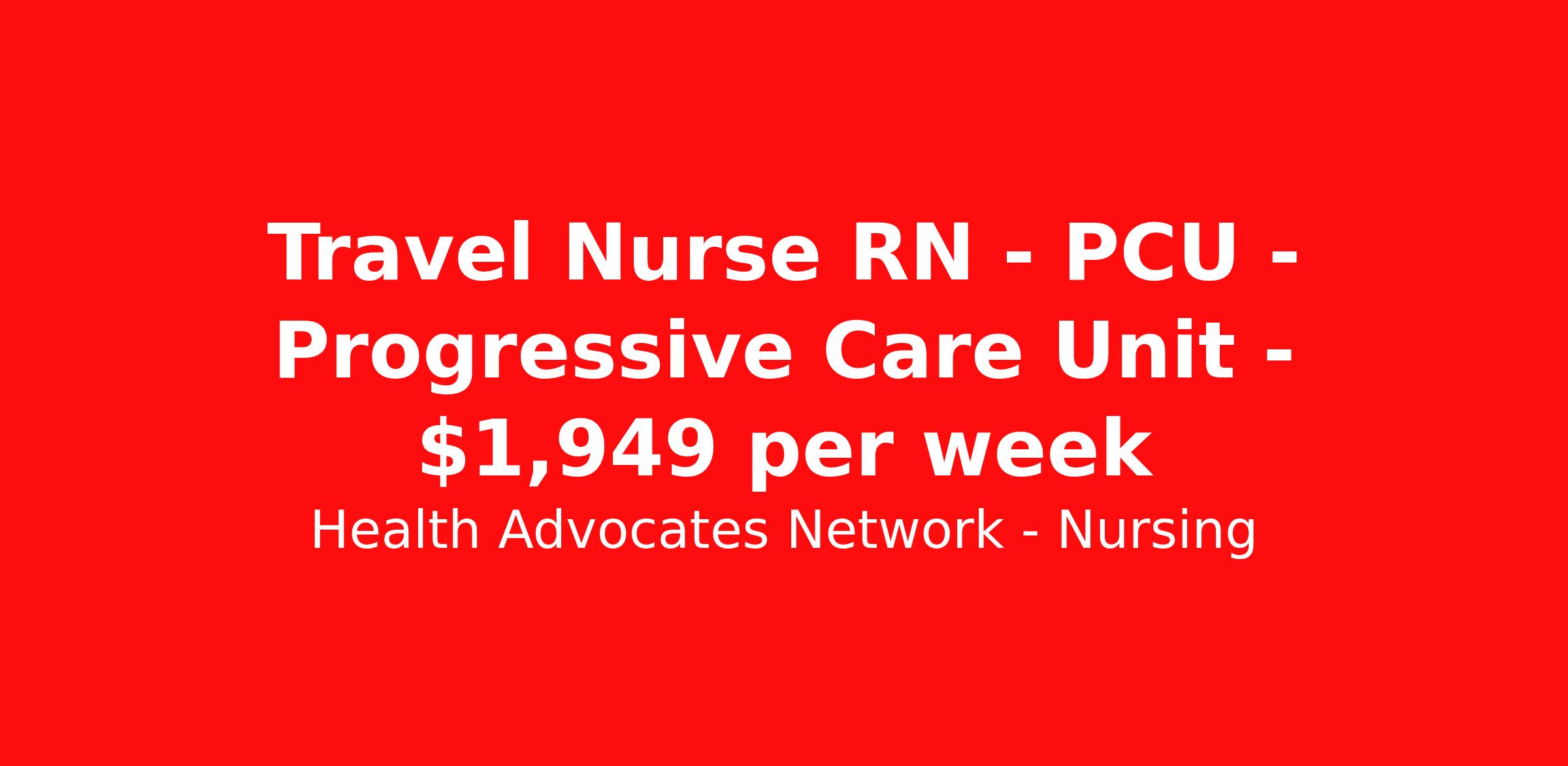 Health Advocates Network - Nursing is seeking a travel nurse RN PCU - Progressive Care Unit for a travel nursing job in Morehead City, North Carolina. Job Description & Requirements Specialty: PCU - Progressive Care Unit Discipline: RN Start Date: 03/30/2026 Duration: 13 weeks 36 hours per week Shift: 12 hours, nights Employment Type: Travel HANStaff Job ID 509894. Pay package is based on 12 hour shifts and 36 hours per week (subject to confirmation) with tax-free stipend amount to be determined. Posted job title: RN - PCU About Health Advocates Network - Nursing Health Advocates Network was founded on the basis of a shared aspiration, to improve the way healthcare staffing is done. We are a company established and led by nurses. Our flexible approach enables us to develop solutions customized to your specific needs. From short- and long-term travel contracts to local and per diem assignments and more, we are here to get you to your next adventure! By solving challenges, providing the best placements, and advocating for you, we stand to help you thrive and pave the path forward in your career. Click on the videos below to learn more about our values!