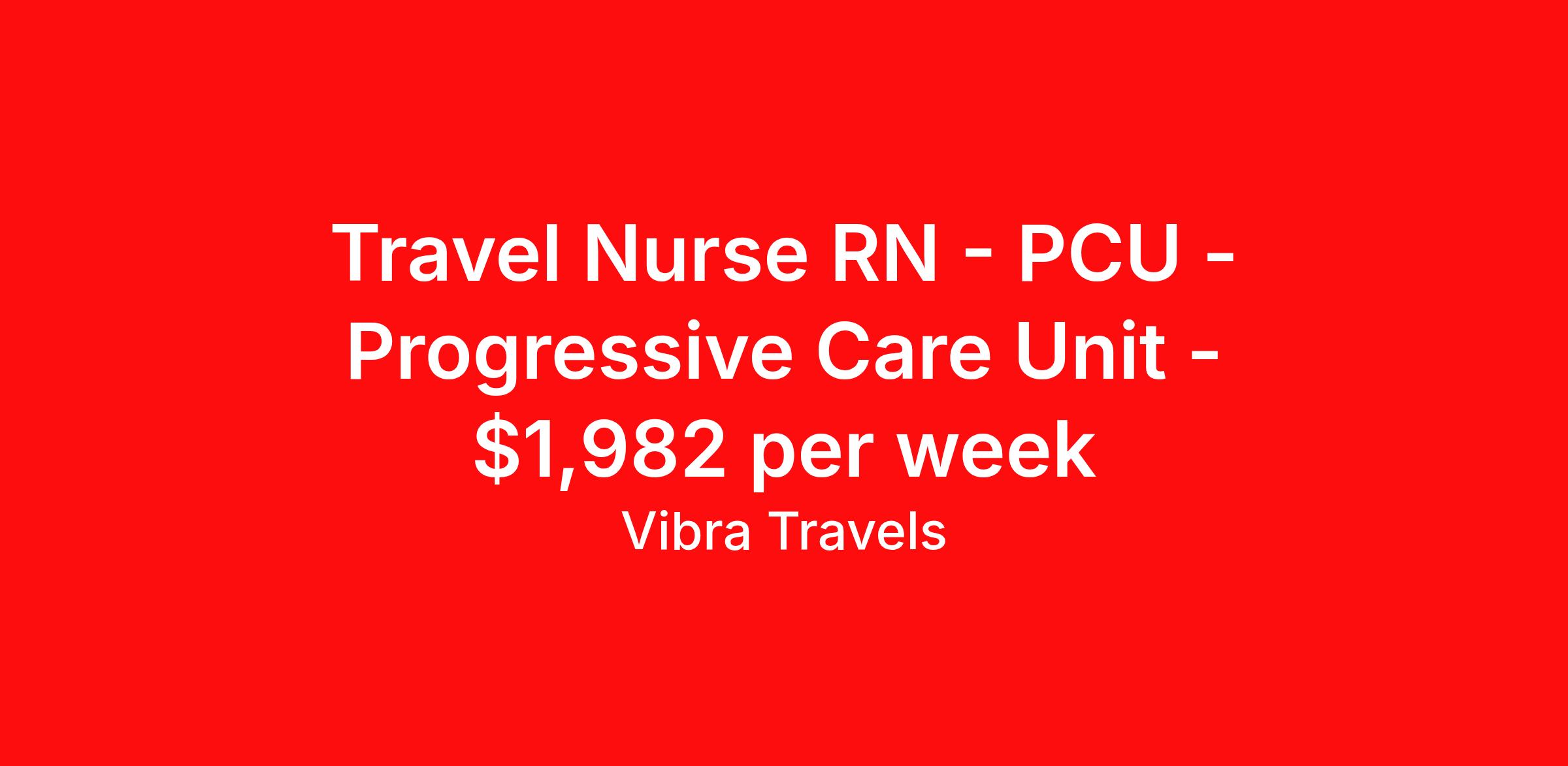Travel Nurse RN - PCU - Progressive Care Unit - $1,982 per week