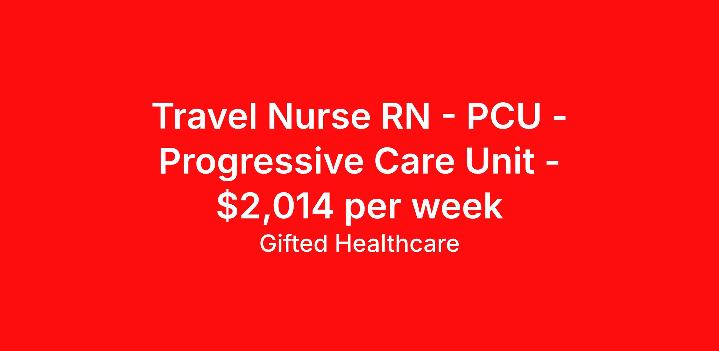 Gifted Healthcare is seeking a travel nurse RN PCU - Progressive Care Unit for a travel nursing job in Albany, Georgia. Job Description & Requirements Specialty: PCU - Progressive Care Unit Discipline: RN Duration: 17 weeks 36 hours per week Shift: 12 hours, days Employment Type: Travel Requirements: • 2 years recent PCU RN experience • Must live 75 miles from the facility Benefits: • Guaranteed Pay: No concerns about canceled shifts • Premium Overtime: Earn 2x your hourly rate for overtime (excluding local, PRN, CA, and Govt assignments) • Weekly Pay: Get paid weekly for financial flexibility Apply now for travel opportunities with Gifted Healthcare! Gifted Healthcare Job ID 4257e. Pay package is based on 12 hour shifts and 36 hours per week (subject to confirmation) with tax-free stipend amount to be determined. About Gifted Healthcare Gifted Healthcare is an award-winning staffing agency that offers career opportunities to clinicians, healthcare leaders, and school-based professionals. Gifted provides Travel, Local, Per Diem, Government, and School-Based assignments as well as Interim Leadership services at premier facilities across the United States. We strive to elevate human connection in the delivery of care, and our team is committed to supporting you every step of the way in order to help you succeed on your terms. Joining Gifted comes with benefits like schedule flexibility, competitive pay, and the opportunity to gain valuable clinical experience in top-notch facilities. As a Gifted clinician, you can trust that we will invest in your career, fight for your well-being, and put your needs first. Apply with Gifted Healthcare today for access to exceptional job opportunities, day-one benefits, and 24/7 support. Our vision is to elevate the human connection in the delivery of care we provide to our clinicians. We serve your evolving needs through innovation, community, compassion, and service. Gifted is here for you every step of the way to help you succeed on your terms. Working with Gifted comes with benefits like schedule flexibility, competitive pay, and the opportunity to gain valuable clinical experience in top-notch facilities. Benefits Weekly pay Guaranteed Hours Pet insurance Wellness and fitness programs Referral bonus Medical benefits Dental benefits Vision benefits Benefits start day 1
