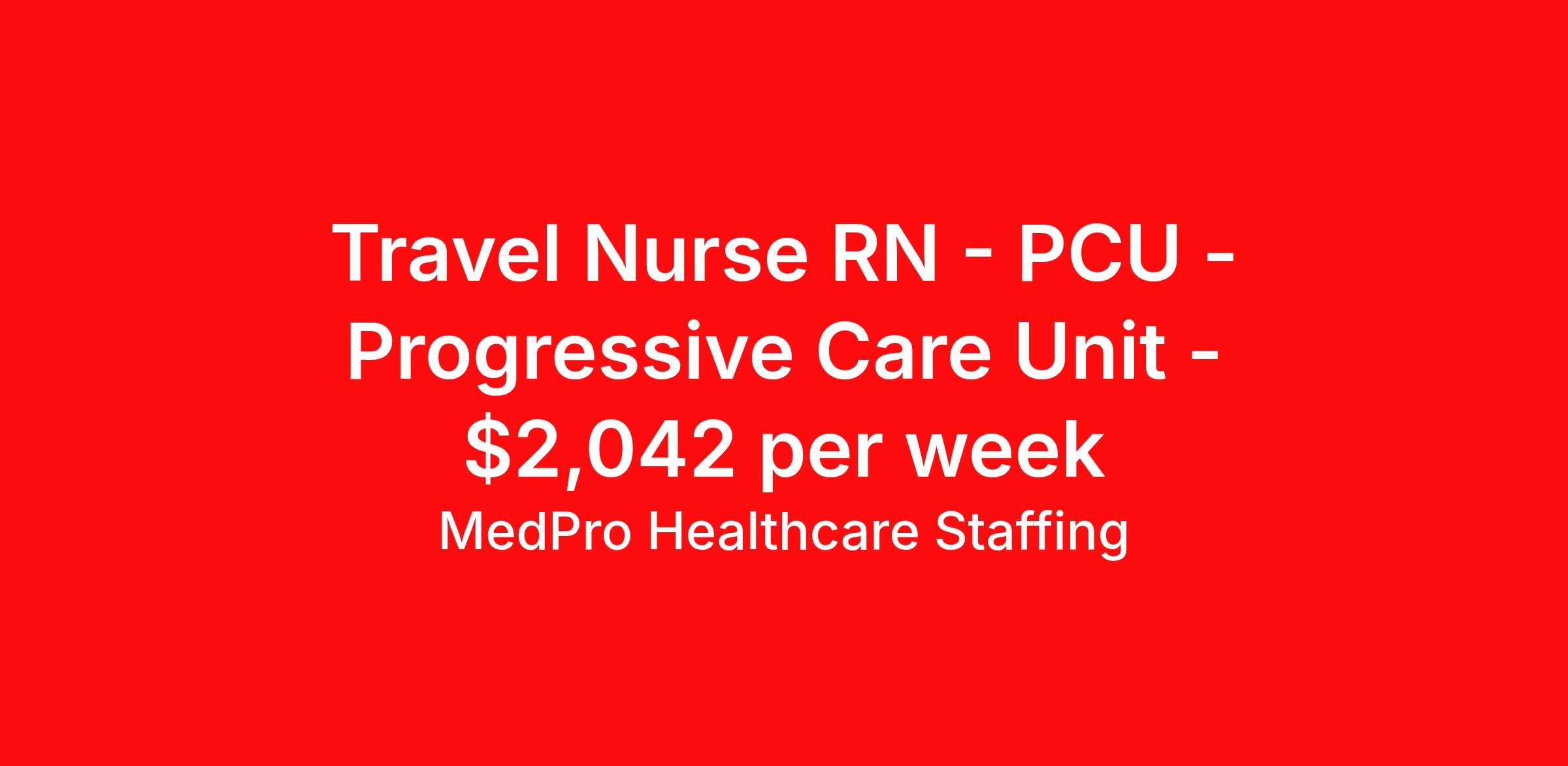 MedPro Healthcare Staffing is seeking a travel nurse RN PCU - Progressive Care Unit for a travel nursing job in Greensboro, North Carolina. Job Description & Requirements Specialty: PCU - Progressive Care Unit Discipline: RN Start Date: 04/13/2026 Duration: 13 weeks 36 hours per week Shift: 12 hours, nights Employment Type: Travel MedPro Healthcare Staffing , a Joint Commission-certified staffing agency, is seeking a quality PCU/Step-down Nurse for a travel assignment with one of our top healthcare clients. Requirements Active RN License Degree from accredited nursing program BLS & ACLS Certifications Eighteen months of recent experience in an Acute Care PCU/Step-down setting Other requirements to be determined by our client facility Benefits Weekly pay and direct deposit Full coverage of all credentialing fees Private housing or housing allowance Group Health insurance for you and your family Company-paid life and disability insurance Travel reimbursement 401(k) matching Unlimited Referral Bonuses up to $1,000 Duties Responsibilities Progressive Care Nurses (PCU) care for patients requiring close monitoring and frequent assessment, but who aren't unstable enough to need ICU care. PCU nurses monitor cardiac and other critical vital signs and detect any changes, thereby enabling intervention of life-threatening or emergency situations. Many PCU patients receive complex medications that may require titration based on the patient’s vital signs The PCU nurse is sometimes also called a step-down nurse and the PCU is also known as cardiac step-down, medical step-down, neuro step-down, surgical step-down and ER holding. Monitor and assess patients who aren't unstable enough to need ICU care. Utilize computer equipment to monitor cardiac and other vital information and detect any changes, thereby enabling intervention of life-threatening or emergency situations. About Agency MedPro Healthcare Staffing is a Joint Commission certified provider of contract staffing services. Since 1983, we have placed nursing and allied travelers in top healthcare facilities nationwide. Join us today for your very own MedPro Experience®. If qualified and interested, please call for immediate consideration. MedPro Staffing is an Equal Opportunity Employer. All applicants will be considered for employment without attention to race, color, religion, national origin, age, sex, disability, marital status or veteran status. Key Words: PCU Nurse, RN-Progressive Care, Telemetry Nursing positions, Step-down, Stepdown, Travel Nurse, Contract Nurse, Agency Nurse, EKG, Tele, Telemetry Contracts, Registered Nurse, Telemetry Nurse, Tele Nurse, RN, Registered Nurse, Telemetry Nurse, RN-Tele, Travel Nursing *Weekly payment estimates are intended for informational purposes only and include a gross estimate of hourly wages and reimbursements for meal, incidental, and housing expenses. Your recruiter will confirm your eligibility and provide additional details. MedPro Job ID a0Fcx00000GxH6rEAF. Pay package is based on 12 hour shifts and 36 hours per week (subject to confirmation) with tax-free stipend amount to be determined. Posted job title: PCU/Step-down Nurse Nursing: PCU. About MedPro Healthcare Staffing At MedPro Healthcare Staffing , we believe no one cares more for caregivers than we do. Our mission is simple: you focus on your patients, and we’ll take care of the rest. As a Joint Commission-certified leader in temporary and contract healthcare staffing since 1983, MedPro has proudly connected nursing and allied travelers with top healthcare facilities across the nation. With thousands of job opportunities available nationwide, we make it easy to find assignments that align with your goals and lifestyle. Our on-staff clinical support team—alongside a compassionate group of experienced recruiters—provides hands-on guidance every step of the way. From Day 1 medical benefits and a 401(k) plan to personalized career support, we’re committed to ensuring every professional we serve feels valued, cared for, and empowered to succeed. Guided by a CEO who is a Registered Nurse, MedPro is built on a foundation of clinical insight and genuine compassion for the caregiving community. Through The MedPro Experience® , we deliver travel assignments that are rewarding, memorable, and designed to help you DREAM big, EXPLORE often, and ACHIEVE greatness. Benefits Day 1 medical, dental, and vision benefits for you and your family Weekly pay and direct deposit Unlimited Referral Bonuses starting at $500 On Staff Clinical Support Team Access to nationwide travel assignments MPX Mobile app -24/7 real-time access to jobs, credentials, assignment details, and more Full coverage of all credentialing fees Private housing or housing allowance Tax Free Per Diems, Housing Stipends and Travel Reimbursements Company-paid life and disability insurance Travel reimbursement 401(k) matching Benefits Weekly pay Referral bonus Employee assistance programs