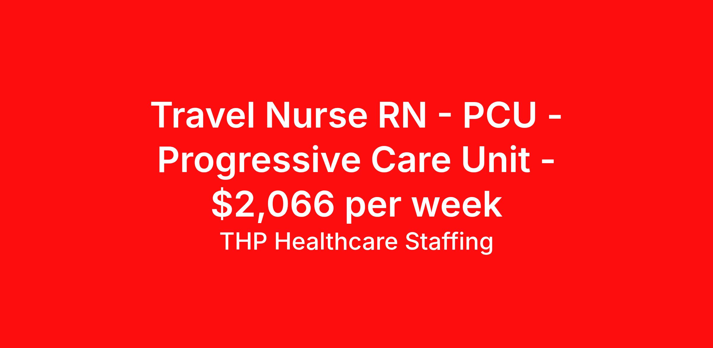 THP Healthcare Staffing is seeking a travel nurse RN PCU - Progressive Care Unit for a travel nursing job in Asheville, North Carolina. Job Description & Requirements Specialty: PCU - Progressive Care Unit Discipline: RN Start Date: 03/30/2026 Duration: 13 weeks 36 hours per week Shift: 12 hours, nights Employment Type: Travel Our Client is currently seeking RN - Stepdown positions in Asheville, NC for a 3x12 Nights shift. You must have current State Licensure and at least 1 year of recent experience. Requirements Current Resume State Licensure Current BLS and/or ACLS and/or Specialty Certifications 2 Current Clinical References Physical (Within 12 Months) TB Skin Test (Within 12 Months) Titers - MMR/Hep B/Varicella Respiratory Fit Test (Within 12 Months) Current - Tdap/Flu Vaccinations Must be able to pass pre-employment, background and urine drug screening Compensation and Benefits Compettive Pay Packages Health Benefit Package Travel pay - 1st pay check Extending Contract Bonus Refer a friend and earn extra cash! At THP Healthcare Staffing, we take care of you - work with us, not for us! THP Healthcare Staffing Job ID 17933087. Pay package is based on 12 hour shifts and 36.0 hours per week (subject to confirmation) with tax-free stipend amount to be determined. Posted job title: RN:Stepdown,19:00:00-07:00:00 About THP Healthcare Staffing At THP Staffing, we specialize in connecting healthcare facilities with highly skilled travel nurses and allied health professionals who bring exceptional care and expertise wherever they go. Our mission is to ensure that every healthcare provider has access to top nursing talent, regardless of location, to deliver superior patient outcomes. Benefits Weekly pay Life insurance Pet insurance License and certification reimbursement Medical benefits Employee assistance programs Referral bonus Vision benefits Holiday Pay Health savings account