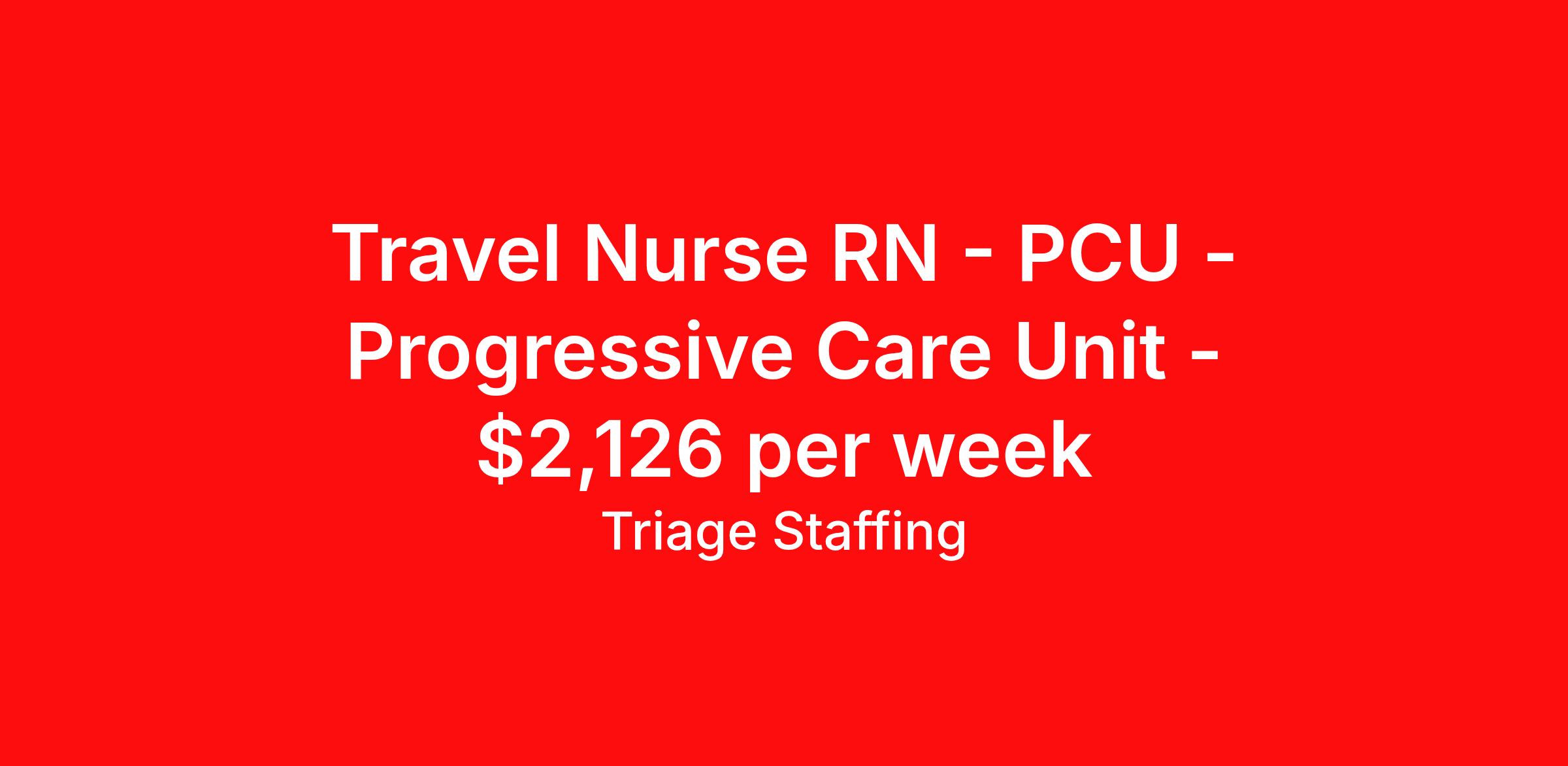 Travel Nurse RN - PCU - Progressive Care Unit - $2,126 per week