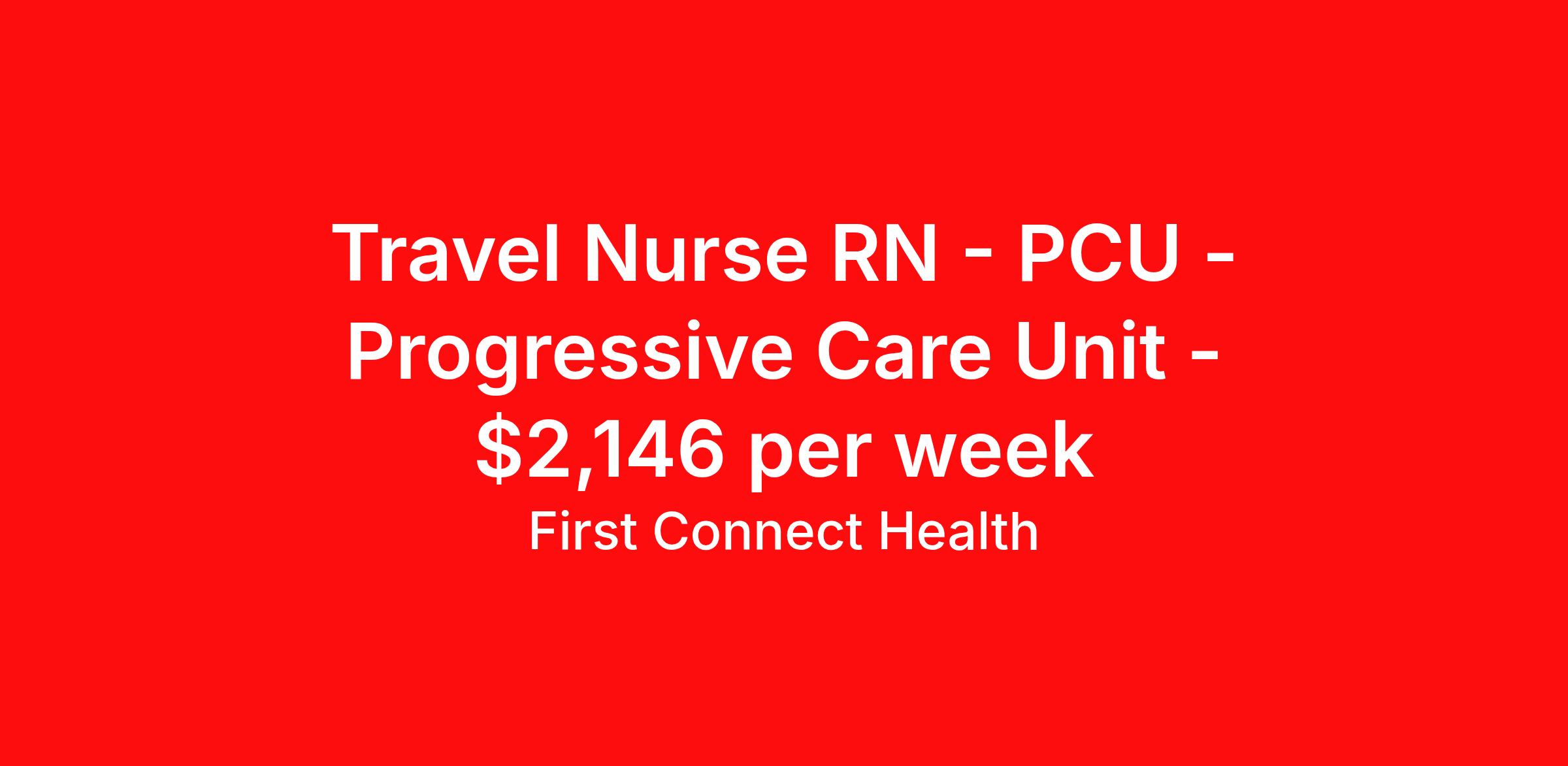 First Connect Health is seeking a travel nurse RN PCU - Progressive Care Unit for a travel nursing job in Auburn, New York. Job Description & Requirements Specialty: PCU - Progressive Care Unit Discipline: RN Start Date: 04/20/2026 Duration: 13 weeks 36 hours per week Shift: 12 hours, days Employment Type: Travel Title: RN PCU Location: Auburn, NY 13021 Duration: 13 Weeks Shift: Day 3x12-Hour (07:00 - 19:30) Requirements: 2 Yrs. of exp. ACLS, BLS, NIHSS Required. Allscripts Required. Description: Step-Down RN - 2 years of RECENT Step-Down experience 36 hrs guaranteed EOW & EOH No blocked scheduling Local candidates accepted (lower BR) Ratio: 1:4-5 Medication System Pyxis Unit / Patient Population Diagnoses Congestive Heart Failure (CHF) S/P heart catheterization S/P vascular procedures Respiratory failure (BiPAP / CPAP / Vapotherm) Cardiac dysrhythmias Unit Procedures / Expectations Post-heart cath care TR bands Post-vascular procedure monitoring Frequent VS and neurovascular checks Certifications Required BLS ACLS NIHSS Required Skills Cardiac / Emergency Cardiac monitoring Dysrhythmia interpretation Dysrhythmia management 12-lead EKG/ECG IV / Vascular IV start and maintenance PICC line management Blood product administration Medications Emergency medications Procedural sedation administration/monitoring Cardiac drip titration Neurological CVA / Acute Stroke management Respiratory / Thoracic BiPAP / CPAP management Assist with chest tube insertion/removal Professional Skills Infection prevention Isolation precautions / PPE Phlebotomy Please note if your traveler lives within 50 miles of facility, the bill rate is $15 less than the travel rate. Orientation Paid. 3199097 About First Connect Health At First Connect Health , we take pride in being a Joint Commission–certified healthcare staffing agency , headquartered in Newark, New Jersey. This prestigious certification is more than just a seal — it's a reflection of our commitment to excellence, safety, and quality in everything we do. By meeting the rigorous standards set by The Joint Commission, one of the most respected accrediting bodies in healthcare, we've demonstrated that our processes, compliance, and patient care standards are aligned with the highest levels of quality in the industry. But our dedication goes beyond certifications. Nurses choose First Connect Health because: ✅ Trust and Transparency: We foster honest communication, timely updates, and full transparency throughout your placement journey. ✅ Best Pay & Benefits: We offer industry-leading compensation packages, along with benefits that support your career goals. ✅ Flexibility & Choice: Whether you're seeking short-term assignments, long-term contracts, or local opportunities, we provide the flexibility to suit your preferences. ✅ Personalized Support: Our recruiters take the time to understand your needs, guiding you with care, respect, and responsiveness at every step. When you work with First Connect Health, you're not just another number — you're a valued professional. Join a team that’s focused on your success, your well-being, and your future in healthcare. Benefits Medical benefits Sick pay 401k retirement plan Weekly pay Referral bonus