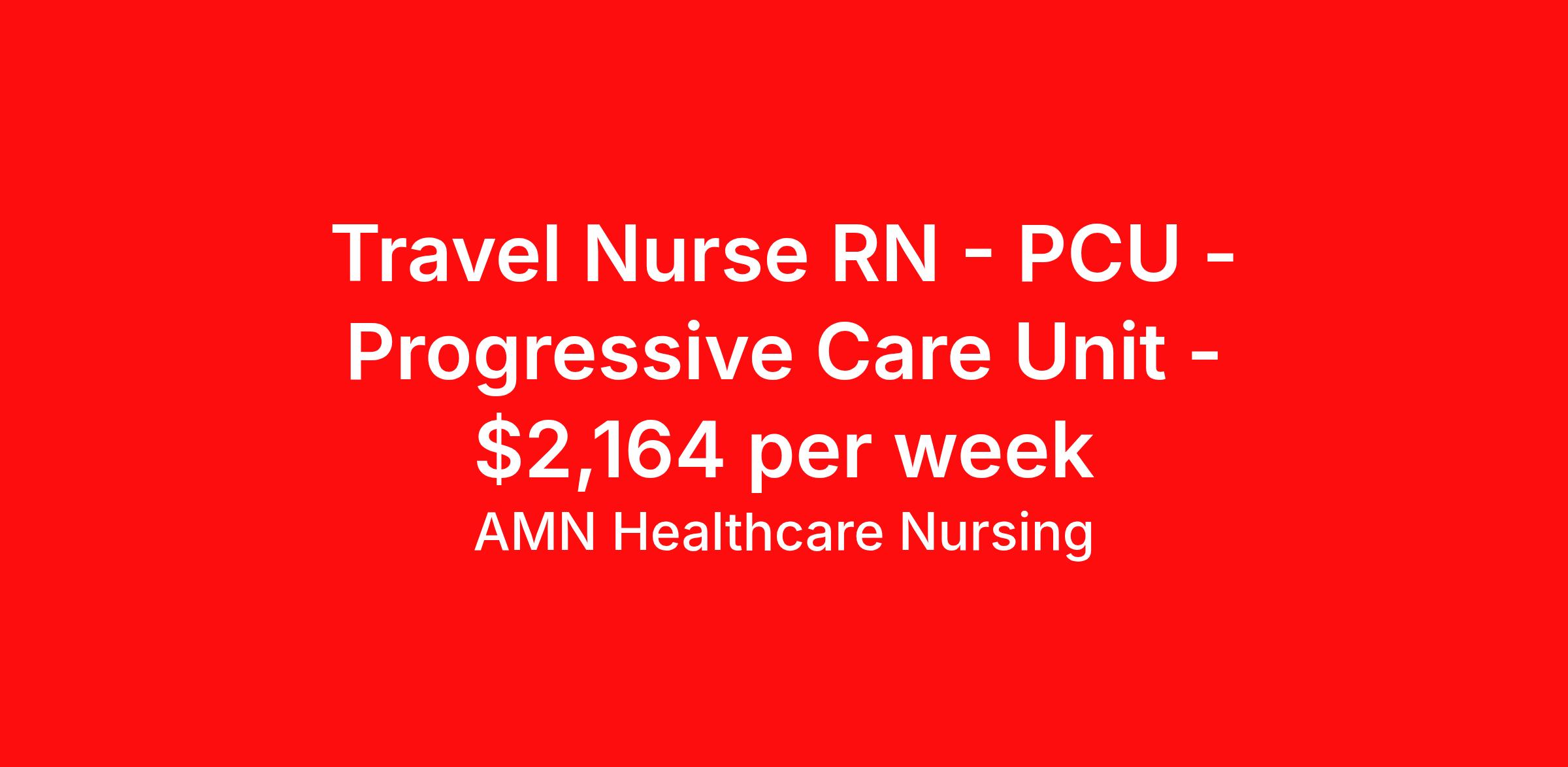 AMN Healthcare Nursing is seeking a travel nurse RN PCU - Progressive Care Unit for a travel nursing job in ROCHESTER, New York. Job Description & Requirements Specialty: PCU - Progressive Care Unit Discipline: RN Duration: 13 weeks 36 hours per week Shift: 12 hours, days, evenings, nights Employment Type: Travel Job Description & Requirements Registered Nurse – Progressive Care - Travel - (PCU RN) StartDate: ASAP Available Shifts: 12 D/E/N Pay Rate: $2099.00 - $2228.00 This position presents an opportunity to join an elite team of passionate physicians and nurses within the Medical Surgical (MS) unit. This unit sees a wide variety of conditions including endocrine, wound care, neurology and gerontology as well as patients undergoing basic recovery care. Your expertise will be utilized for high level care within the traditional Medical Surgical unit setting. MS RN's can expect to enhance their professional experience while providing top notch patient care to those most needing it. Required Qualifications Registered Nurse, PCU Licenses: RN-NY Certifications: ACLS(Copy needed); BLS(Copy needed) SSN Required DOB Required Work History: Should not be more than 30 days of gap in entire work history References: 2 References in the last 12 months Facility Location A unique urban oasis, this New York metropolis is famous for its people, food and fun. Visit any one of the city’s historic neighborhoods and landmarks, and while you’re at it, make sure you take the time to indulge in the city’s most famous cuisine—hotdogs! Home to countless large companies and educational institutions, Rochester is one of New York’s most energetic cities. Job Benefits At AMN Healthcare we take care of our travelers! We offer: Competitive pay rates Free, quality, private housing Medical, Dental, Vision 401(k) and Flex Spending Life Insurance Accident and Short-term Disability Coverage Free Continuing Education Refer a friend and earn extra cash! About the Company At AMN Healthcare, we strive to be recognized as the most trusted, innovative, and influential force in helping healthcare organizations provide quality patient care that continually evolves to make healthcare more human, more effective, and more achievable. Progressive care nurse, PCU RN, PCU, progressive care, progressive care unit, patient care, PCU nurse, nurse, nursing, RN, R.N., registered nurse, healthcare, health care, hospital, step down nurse, telemetry nurse, ER holding American Mobile Healthcare Job ID 3385064. Pay package is based on 12 hour shifts and 36 hours per week (subject to confirmation) with tax-free stipend amount to be determined. Posted job title: Registered Nurse – Progressive Care - Travel - (PCU RN) About AMN Healthcare Nursing AMN Healthcare is a leader in Nurse staffing. Our relationships with numerous healthcare facilities - including hospitals, home health agencies, and long-term care facilities - enable us to offer the most current travel nurse, local staffing, rapid response and crisis nurse jobs nationwide. We''re committed to finding you the best nursing job to fit your career goals. AMN Healthcare is an EEO/AA/Disability/Protected Veteran Employer. We encourage minority and female applicants to apply. Benefits Company provided housing options Medical benefits Dental benefits Continuing Education