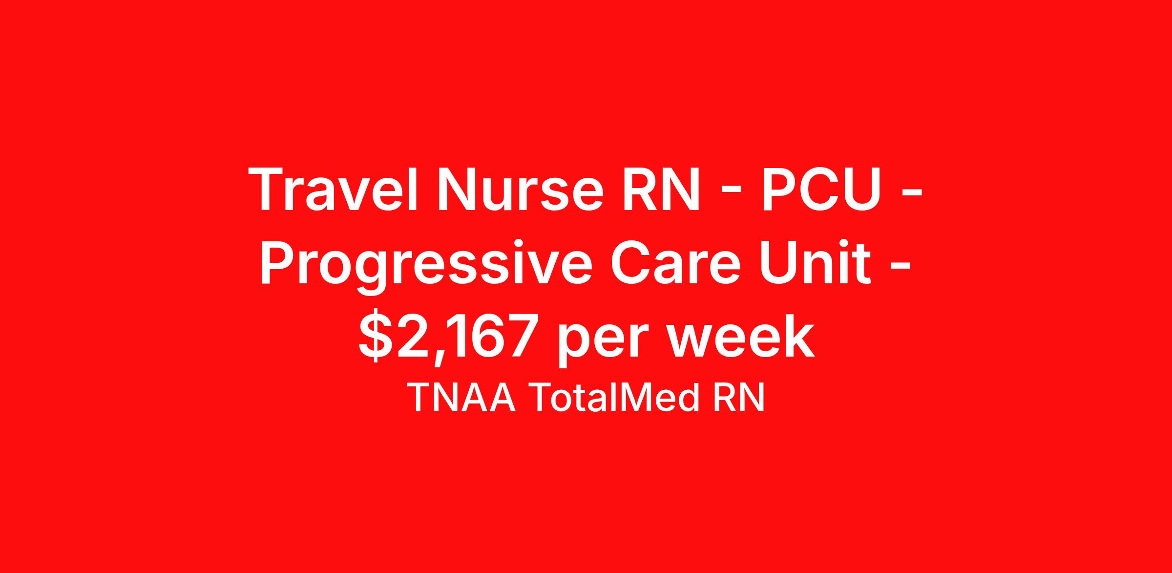 Travel Nurse RN - PCU - Progressive Care Unit - $2,167 per week