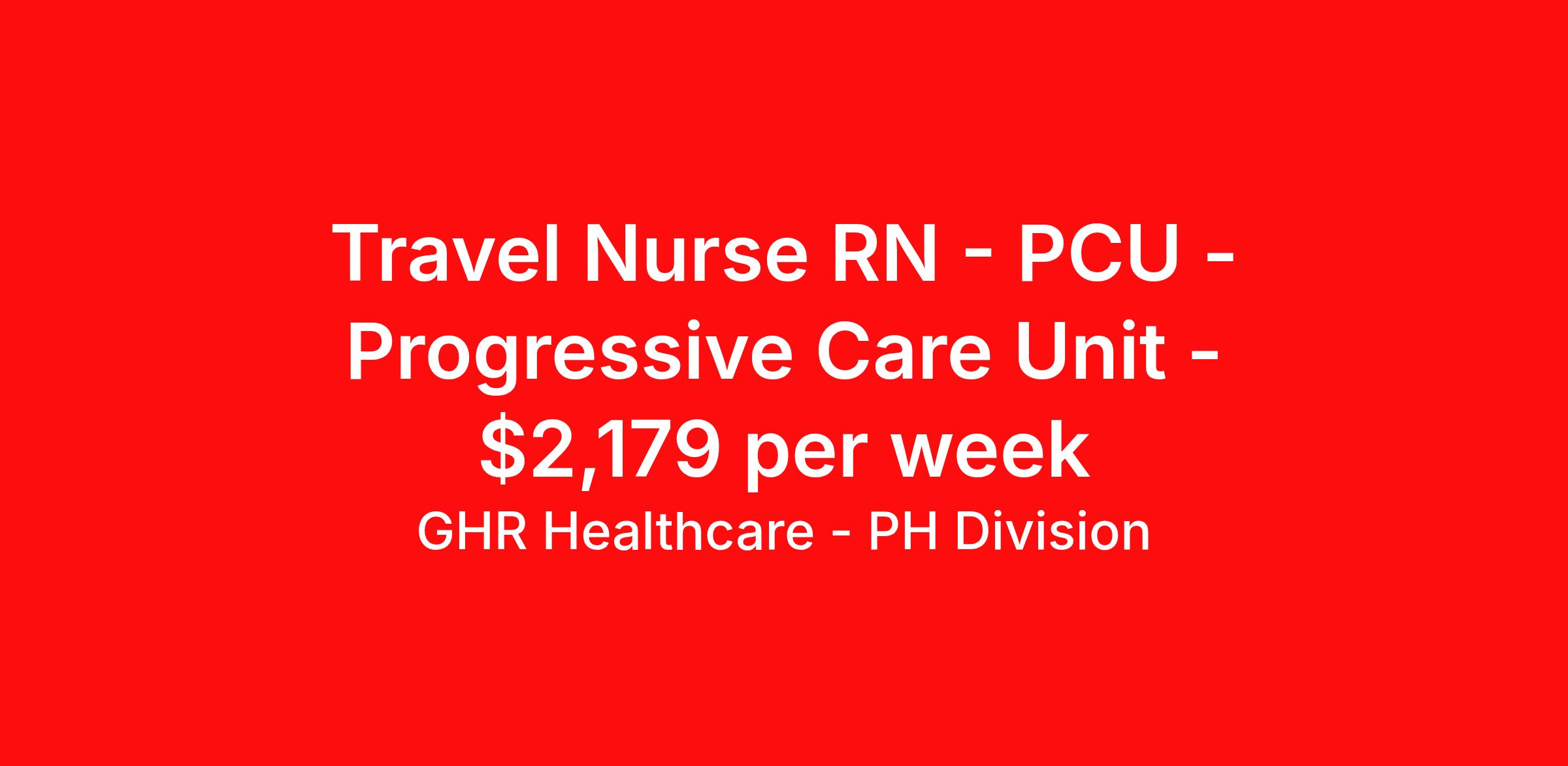 GHR Healthcare - PH Division is seeking a travel nurse RN PCU - Progressive Care Unit for a travel nursing job in Saginaw, Michigan. Job Description & Requirements Specialty: PCU - Progressive Care Unit Discipline: RN Start Date: 04/13/2026 Duration: 13 weeks 36 hours per week Shift: 12 hours Employment Type: Travel Travel Registered Nurse (RN) – PCU / Cardiac Step-Down – Nights | Saginaw, MI Travel RN – PCU/Cardiac Step-Down Nights in Saginaw, MI. 13-week assignment; requires 2 years PCU/Telemetry experience and current BLS/ACLS. Job Details Location: Saginaw, MI 48607 (Great Lakes Bay region) — Michigan nursing jobs / Saginaw healthcare jobs Position: Travel Registered Nurse (RN) – Progressive Care Unit (PCU) / Cardiac Step-Down / Telemetry RN Assignment Length: 13 weeks (March 30, 2026 – June 29, 2026) Estimated Weekly Pay: $1,860 - $1,960 Shift: 12-hour Nights (7:00 PM – 7:15 AM) — Night shift RN Hours per Week: 36 guaranteed Openings: 5 Travel RN positions available Schedule: Every other weekend/holiday; No on-call Job Requirements / Qualifications Minimum 2 years recent RN experience in PCU, Cardiac Step-Down, or Telemetry (required) Active Michigan RN license (LARA and/or Nursys verification required) Current American Heart Association BLS and ACLS certifications (required) Telemetry skills checklist current within 1 year (required) Two supervisory reference forms completed within the last 2 years (required) Recent traveler experience highly preferred (Travel RN experience) Local candidates considered (50-mile radius restriction applies for only one 13-week contract) All scheduling requests must be submitted with your application Key Responsibilities Assess patients for physical, emotional, psychosocial, and family support needs in a PCU/Cardiac Step-Down setting Organize and coordinate total patient care based on clinical assessment and individualized care plans Monitor cardiac telemetry, recognize dysrhythmias, and initiate interventions per protocol Evaluate patient progress and adjust nursing care to meet established goals Collaborate with interdisciplinary healthcare team members (physicians, respiratory therapy, case management) to implement and coordinate care Provide patient and family education, participate in discharge planning, and support transitions of care Why Work in Saginaw, MI? Located in the heart of Michigan's Great Lakes Bay region — ideal for travel nurses exploring Michigan nursing jobs Access to riverside parks, arts and culture, family-friendly neighborhoods, and affordable living Outdoor recreation, community events, and a welcoming healthcare community for travelers Apply now to join our team as a Travel RN in the PCU/Cardiac Step-Down unit. Submit your resume, telemetry skills checklist, certifications, and scheduling requests with your application. Join our healthcare team today and advance your nursing career in Saginaw, MI! Benefits 401K with Matching, Healthcare, Dental and Vision Equal Opportunity We are an equal opportunity employer and value diversity across our organization. We do not discriminate on the basis of race, religion, color, national origin, gender, sexual orientation, age, marital status, veteran status, or disability status. Planet Healthcare Job ID 459629. Pay package is based on 12 hour shifts and 36 hours per week (subject to confirmation) with tax-free stipend amount to be determined. Posted job title: PCU About GHR Healthcare - PH Division For over 30 years, GHR Healthcare has been the bridge between healthcare professionals and the facilities that need them nationwide. We're committed to uncovering your ideal fit, supported by GHR's dedication to competitive compensation, transparent communication, and a devoted team that genuinely cares about your career journey. You can trust us to stand by your side as your advocate, confidante, and partner in advancing your career. At GHR, care and consideration are at the heart of everything we do. Visit ghrhealthcare.com to learn more.