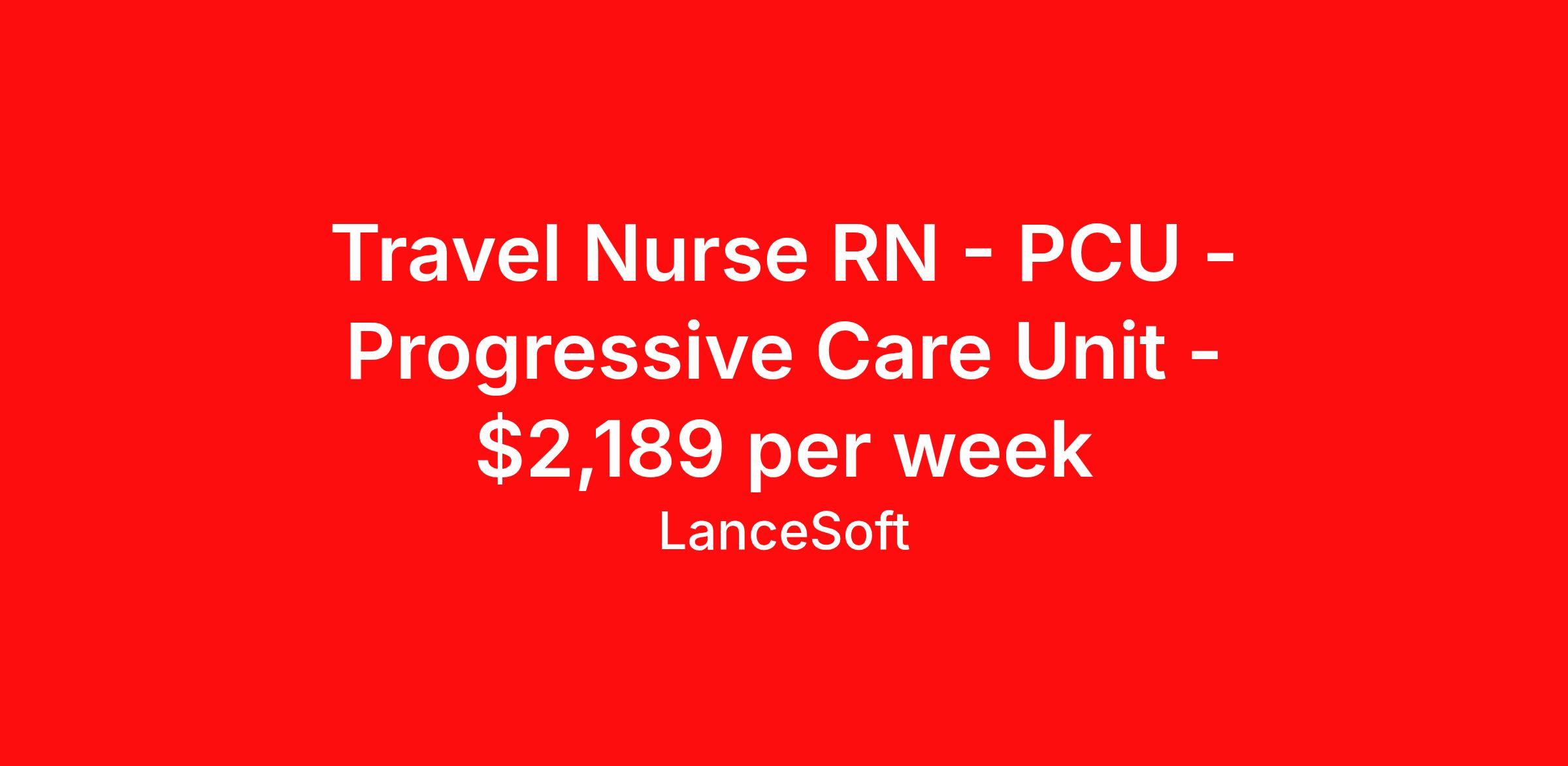 Travel Nurse RN - PCU - Progressive Care Unit - $2,189 per week