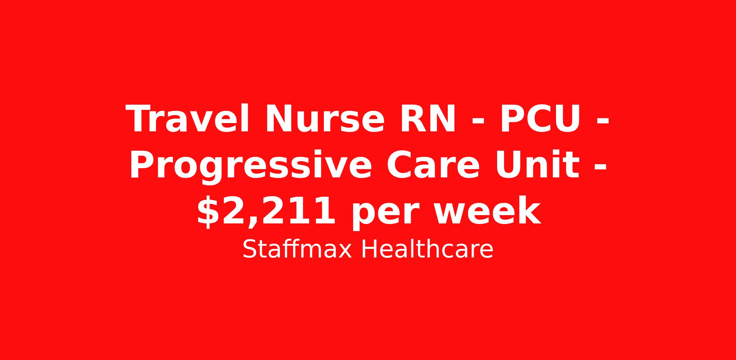 Staffmax Healthcare is seeking a travel nurse RN PCU - Progressive Care Unit for a travel nursing job in Rapid City, South Dakota. Job Description & Requirements Specialty: PCU - Progressive Care Unit Discipline: RN Start Date: 03/30/2026 Duration: 13 weeks 36 hours per week Shift: 12 hours, days Employment Type: Travel Minimum Experience: 1 year Required Certifications: BLS, ACLS Required License: SD or compact RN Skills required: cardiac and vasoactive drip titration; Cardiac rhythm interpretation, IV starts, Blood product administration, CIWA, drain/tube management, indwelling and straight catheter insertion/management, insulin drips - both DKA and non-DKA, continuous bladder irrigation, chest tube maintenance Staffmax Healthcare Job ID 17975522. Pay package is based on 12 hour shifts and 36.0 hours per week (subject to confirmation) with tax-free stipend amount to be determined. Posted job title: Registered Nurse:Progressive Care ,07:00:00-19:00:00 About Staffmax Healthcare Staffmax Healthcare Recruitment Services specializes in the temporary, per diem, and permanent recruitment of healthcare professionals for hospitals, long term care facilities, private practices, clinics, family medical groups, and more. Staffmax provides a comprehensive and collaborative approach to helping medical practitioners and corporations grow their practices. With a professional approach, we help discover, attract, and select healthcare professionals who fit into and complement your existing team. We work on both contingency and retained search agreements and customize each Recruitment mandate to meet the unique needs of each client organization.