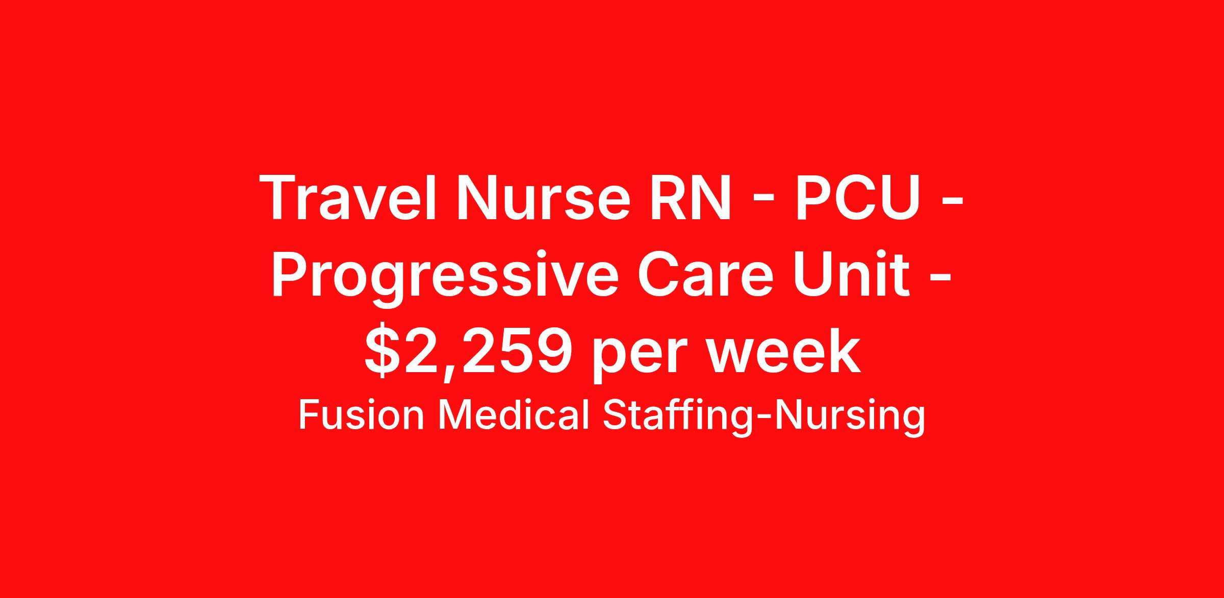Fusion Medical Staffing-Nursing is seeking a travel nurse RN PCU - Progressive Care Unit for a travel nursing job in Urbana, Illinois. Job Description & Requirements Specialty: PCU - Progressive Care Unit Discipline: RN Start Date: 04/13/2026 Duration: 13 weeks 36 hours per week Shift: 12 hours, nights Employment Type: Travel Travel Stepdown RN Company: Fusion Medical Staffing Location: Facility in Urbana, Illinois Job Details Fusion Medical Staffing is seeking a skilled Stepdown RN for a 13-week travel assignment in Urbana, Illinois. As a member of our team, you'll have the opportunity to make a positive impact on the lives of patients while enjoying competitive pay, comprehensive benefits, and the support of a dedicated clinical team. Required Qualifications: One year of recent experience as a Stepdown RN Current Valid RN license in compliance with state regulations Current BLS Certification (AHA/ARC) Current ACLS Certification (AHA/ARC) Preferred Qualifications: Progressive Care Certified Nurse (PCCN) Certification NIHSS Certification Other certifications and licenses may be required for this position Summary: A Stepdown Registered Nurse provides care to patients who are transitioning from intensive care to medical-surgical or general inpatient units. These patients require frequent monitoring and specialized nursing interventions. They assess and manage complex patient needs, administer medications and treatments, and collaborate with multidisciplinary teams to ensure safe, patient-centered care. Essential Work Functions: Monitors and interprets cardiac rhythms, vital signs, and other telemetry data to detect abnormalities and respond appropriately Administers prescribed medications and treatments in accordance with approved nursing techniques, with a focus on cardiac care Prepares equipment and aids physician during cardiac-related procedures and examinations Maintains awareness of comfort and safety needs of telemetry patients Observes patient, records significant conditions and reactions, and notifies supervisor or physician of patient's cardiac status and response to interventions Responds to life-saving situations based upon nursing standards, policies, procedures, and protocols specific to cardiac emergencies Documents nursing history and physical assessment for assigned telemetry patients Initiates patient education plans according to individualized needs, focusing on cardiac health, risk factors, and lifestyle modifications Collaborates with the interdisciplinary team to ensure comprehensive care for telemetry patients Maintains confidentiality of patients and client Performs other duties as assigned within the scope of practice Adheres to hospital safety protocols, infection control guidelines, and regulatory standards Required Essential Skills: Critical thinking, service excellence, and good interpersonal communication skills The ability to read, write, and communicate in the English language Ability to read/comprehend written instructions, follow verbal instructions, and proficiency in PC skills Physical Abilities - Must be able to remain in a stationary position, move about, move equipment (50-100lbs), push, pull, and bend Interpersonal Skills - Must be able to work effectively with a variety of personnel (professional and ancillary) to present a positive attitude and professionalism Technical/Motor Skills - Must have the ability to grasp, perform fine manipulation, push/pull, and move about when assisting with procedures and/or using department equipment Mental Requirements - Must be able to cope with frequent contact with the general public and customers while meeting deadlines under pressure. Must be able to work under close supervision occasionally, as well as working without assistance from other personnel. Must be able to contend with irregular activity schedules occasionally and continuous concentration to detail Sensory - Must possess visual acuity and ability to effectively communicate Benefits Include: Highly competitive pay for travel professionals Comprehensive medical, dental, and vision insurance with first day coverage Paid Time Off (PTO) after 1560 hours Life and Short-term disability offered 401(k) matching Aggressive Refer-a-friend Bonus Program 24/7 recruiter support Reimbursement for licensure and CEUs Why Choose Fusion? At Fusion Medical Staffing, our goal is to improve the lives of everyone we touch, and we're always looking for people like you to join our mission. Your passion for helping others deserves a partner just as committed to supporting you — that’s why we offer day one insurance, $0 copay for mental health services, scholarships and awards, exclusive discounts, and more. From your personal recruiter to our clinical and traveler experience teams, we’re here to guide and celebrate you along your journey. You take care of others; we take care of you. Other Duties Disclaimer: To perform this job successfully, an individual must be able to perform each essential duty satisfactorily. The requirements listed are representative of the knowledge, skill, and/or ability required. Reasonable accommodations may be made to enable individuals with disabilities to perform the essential functions. Other duties may be assigned. This job description is not a comprehensive list of all activities, duties, or responsibilities that are required of the employee for this job and is subject to change at any time with or without notice. Start your rewarding career as a Stepdown RN with Fusion Medical Staffing and join our mission to improve lives. Apply now! *Fusion is an EOE/E-Verify Employer Fusion Medical Staffing - Nursing Job ID 1889304. Pay package is based on 12 hour shifts and 36 hours per week (subject to confirmation) with tax-free stipend amount to be determined. About Fusion Medical Staffing-Nursing With a mission to improve the lives of everyone we touch, Fusion Medical Staffing connects healthcare travelers to opportunities in the locations they'