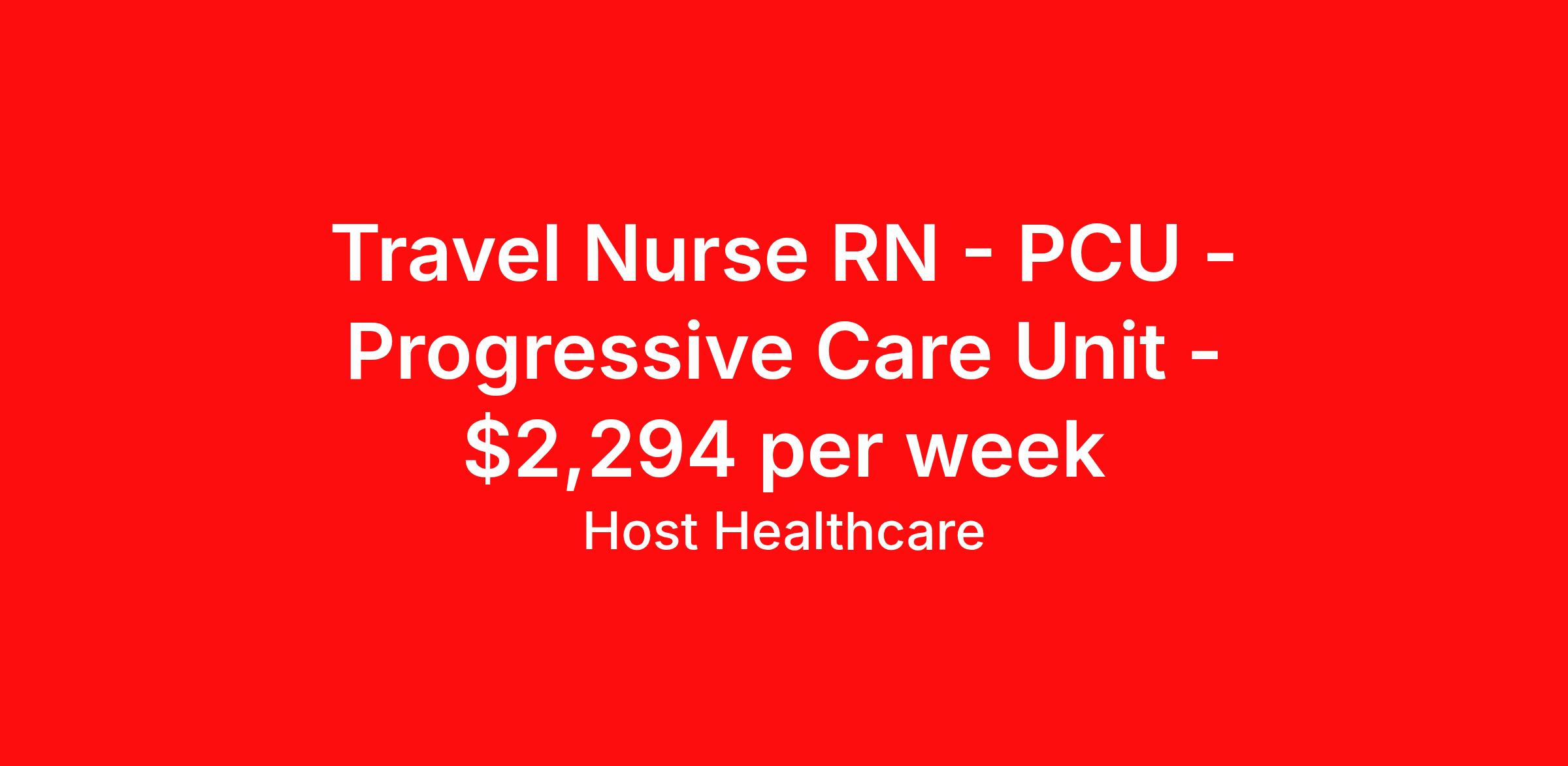 Travel Nurse RN - PCU - Progressive Care Unit - $2,294 per week