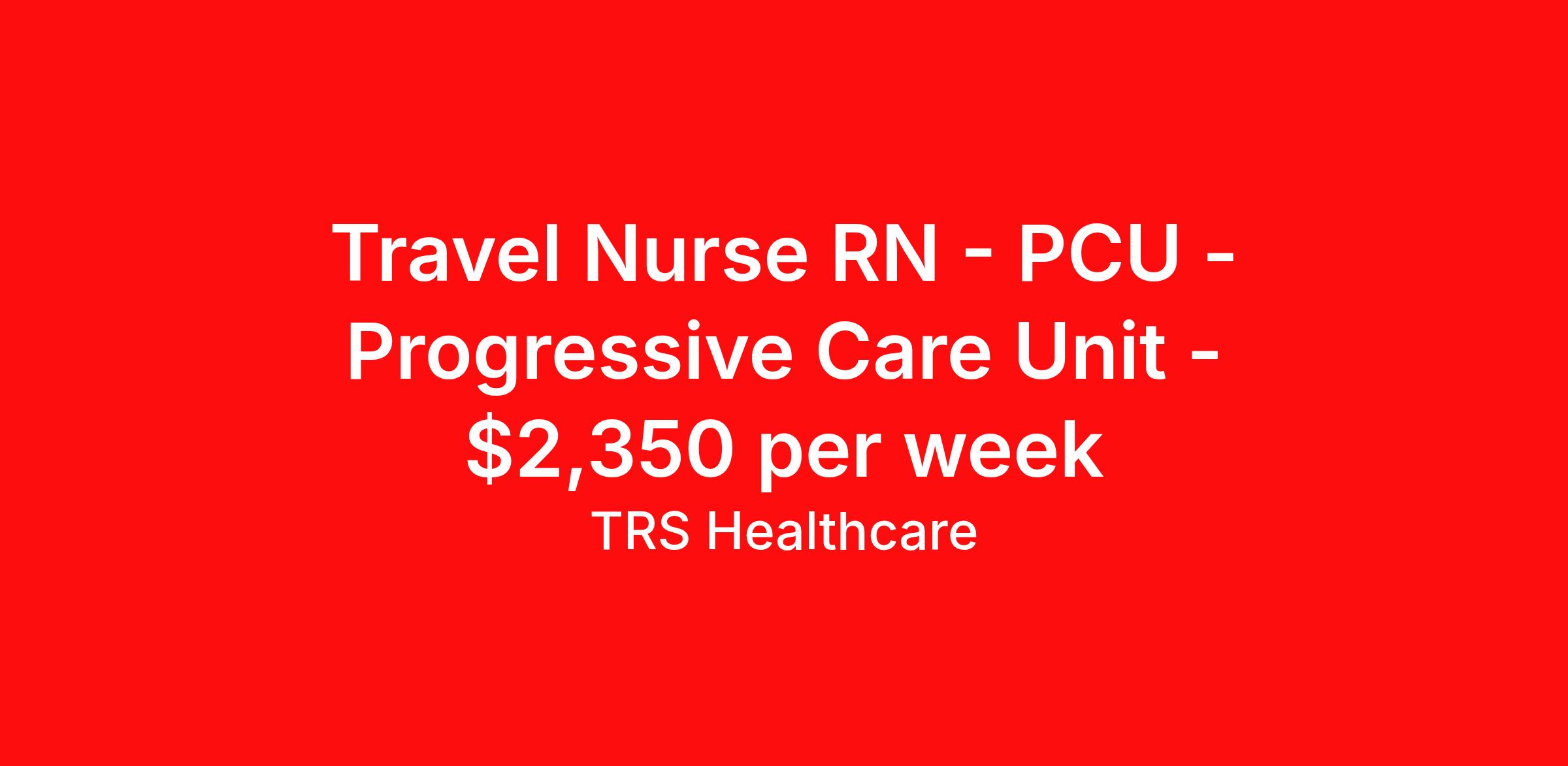 Travel Nurse RN - PCU - Progressive Care Unit - $2,350 per week