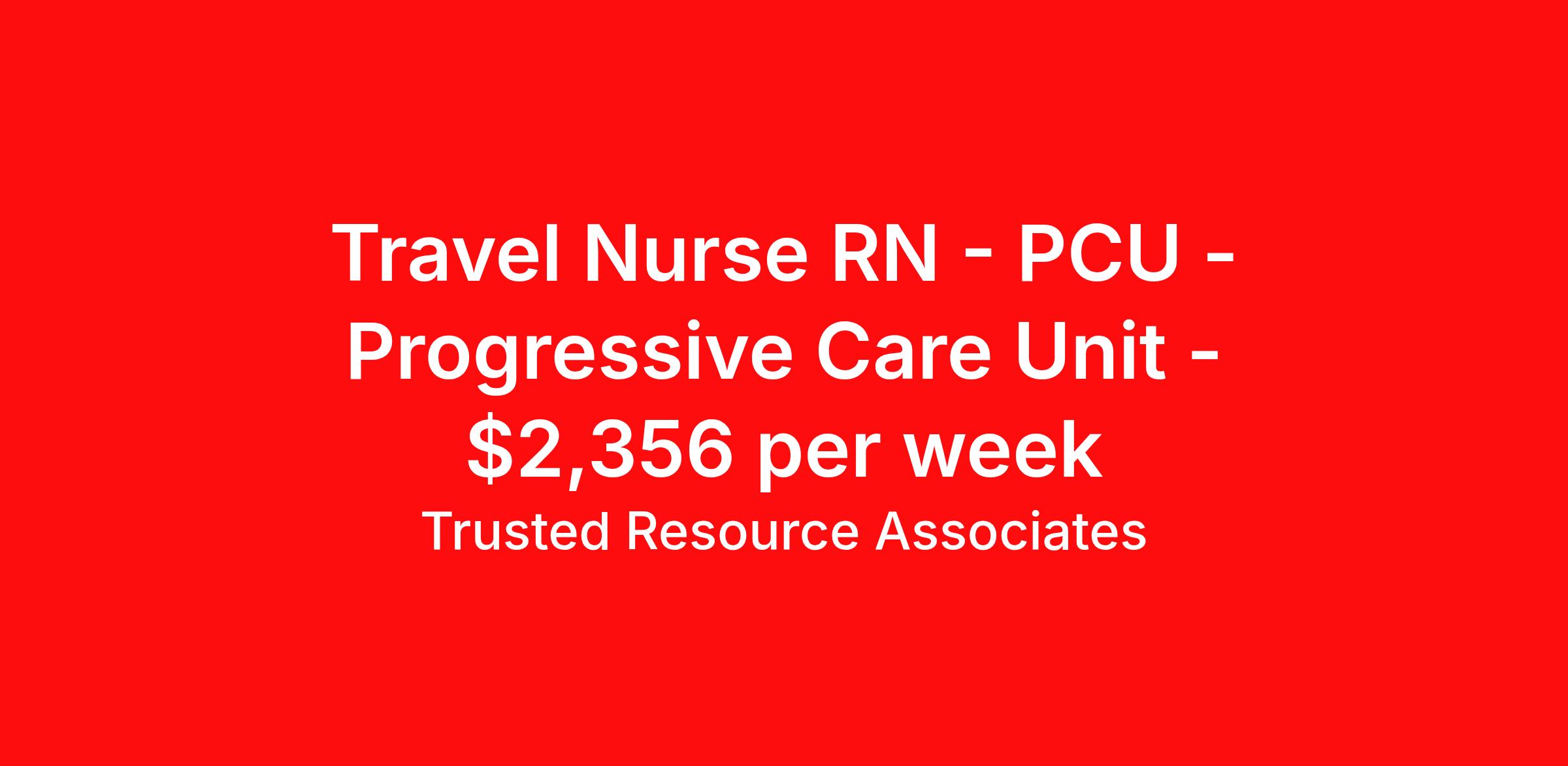 Travel Nurse RN - PCU - Progressive Care Unit - $2,356 per week