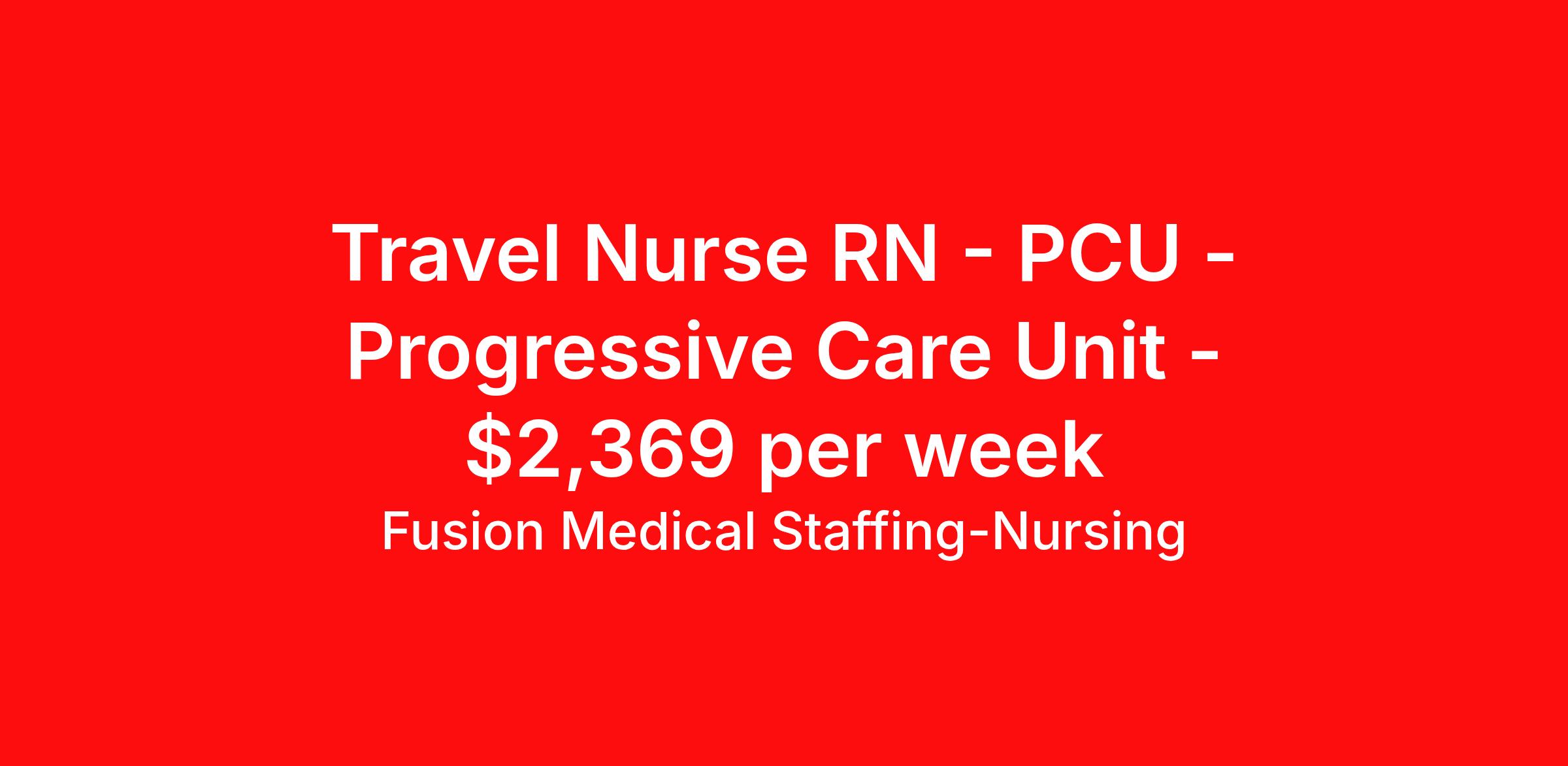 Fusion Medical Staffing-Nursing is seeking a travel nurse RN PCU - Progressive Care Unit for a travel nursing job in Casper, Wyoming. Job Description & Requirements Specialty: PCU - Progressive Care Unit Discipline: RN Start Date: 03/30/2026 Duration: 13 weeks 36 hours per week Shift: 12 hours, nights Employment Type: Travel Travel Stepdown RN Company: Fusion Medical Staffing Location: Facility in Casper, Wyoming Job Details Fusion Medical Staffing is seeking a skilled Stepdown RN for a 13-week travel assignment in Casper, Wyoming. As a member of our team, you'll have the opportunity to make a positive impact on the lives of patients while enjoying competitive pay, comprehensive benefits, and the support of a dedicated clinical team. Required Qualifications: One year of recent experience as a Stepdown RN Current Valid RN license in compliance with state regulations Current BLS Certification (AHA/ARC) Current ACLS Certification (AHA/ARC) Preferred Qualifications: Progressive Care Certified Nurse (PCCN) Certification NIHSS Certification Other certifications and licenses may be required for this position Summary: A Stepdown Registered Nurse provides care to patients who are transitioning from intensive care to medical-surgical or general inpatient units. These patients require frequent monitoring and specialized nursing interventions. They assess and manage complex patient needs, administer medications and treatments, and collaborate with multidisciplinary teams to ensure safe, patient-centered care. Essential Work Functions: Monitors and interprets cardiac rhythms, vital signs, and other telemetry data to detect abnormalities and respond appropriately Administers prescribed medications and treatments in accordance with approved nursing techniques, with a focus on cardiac care Prepares equipment and aids physician during cardiac-related procedures and examinations Maintains awareness of comfort and safety needs of telemetry patients Observes patient, records significant conditions and reactions, and notifies supervisor or physician of patient's cardiac status and response to interventions Responds to life-saving situations based upon nursing standards, policies, procedures, and protocols specific to cardiac emergencies Documents nursing history and physical assessment for assigned telemetry patients Initiates patient education plans according to individualized needs, focusing on cardiac health, risk factors, and lifestyle modifications Collaborates with the interdisciplinary team to ensure comprehensive care for telemetry patients Maintains confidentiality of patients and client Performs other duties as assigned within the scope of practice Adheres to hospital safety protocols, infection control guidelines, and regulatory standards Required Essential Skills: Critical thinking, service excellence, and good interpersonal communication skills The ability to read, write, and communicate in the English language Ability to read/comprehend written instructions, follow verbal instructions, and proficiency in PC skills Physical Abilities - Must be able to remain in a stationary position, move about, move equipment (50-100lbs), push, pull, and bend Interpersonal Skills - Must be able to work effectively with a variety of personnel (professional and ancillary) to present a positive attitude and professionalism Technical/Motor Skills - Must have the ability to grasp, perform fine manipulation, push/pull, and move about when assisting with procedures and/or using department equipment Mental Requirements - Must be able to cope with frequent contact with the general public and customers while meeting deadlines under pressure. Must be able to work under close supervision occasionally, as well as working without assistance from other personnel. Must be able to contend with irregular activity schedules occasionally and continuous concentration to detail Sensory - Must possess visual acuity and ability to effectively communicate Benefits Include: Highly competitive pay for travel professionals Comprehensive medical, dental, and vision insurance with first day coverage Paid Time Off (PTO) after 1560 hours Life and Short-term disability offered 401(k) matching Aggressive Refer-a-friend Bonus Program 24/7 recruiter support Reimbursement for licensure and CEUs Why Choose Fusion? At Fusion Medical Staffing, our goal is to improve the lives of everyone we touch, and we're always looking for people like you to join our mission. Your passion for helping others deserves a partner just as committed to supporting you — that’s why we offer day one insurance, $0 copay for mental health services, scholarships and awards, exclusive discounts, and more. From your personal recruiter to our clinical and traveler experience teams, we’re here to guide and celebrate you along your journey. You take care of others; we take care of you. Other Duties Disclaimer: To perform this job successfully, an individual must be able to perform each essential duty satisfactorily. The requirements listed are representative of the knowledge, skill, and/or ability required. Reasonable accommodations may be made to enable individuals with disabilities to perform the essential functions. Other duties may be assigned. This job description is not a comprehensive list of all activities, duties, or responsibilities that are required of the employee for this job and is subject to change at any time with or without notice. Start your rewarding career as a Stepdown RN with Fusion Medical Staffing and join our mission to improve lives. Apply now! *Fusion is an EOE/E-Verify Employer Fusion Medical Staffing - Nursing Job ID 1888009. Pay package is based on 12 hour shifts and 36 hours per week (subject to confirmation) with tax-free stipend amount to be determined. About Fusion Medical Staffing-Nursing With a mission to improve the lives of everyone we touch, Fusion Medical Staffing connects healthcare travelers to opportunities in the locations they've 