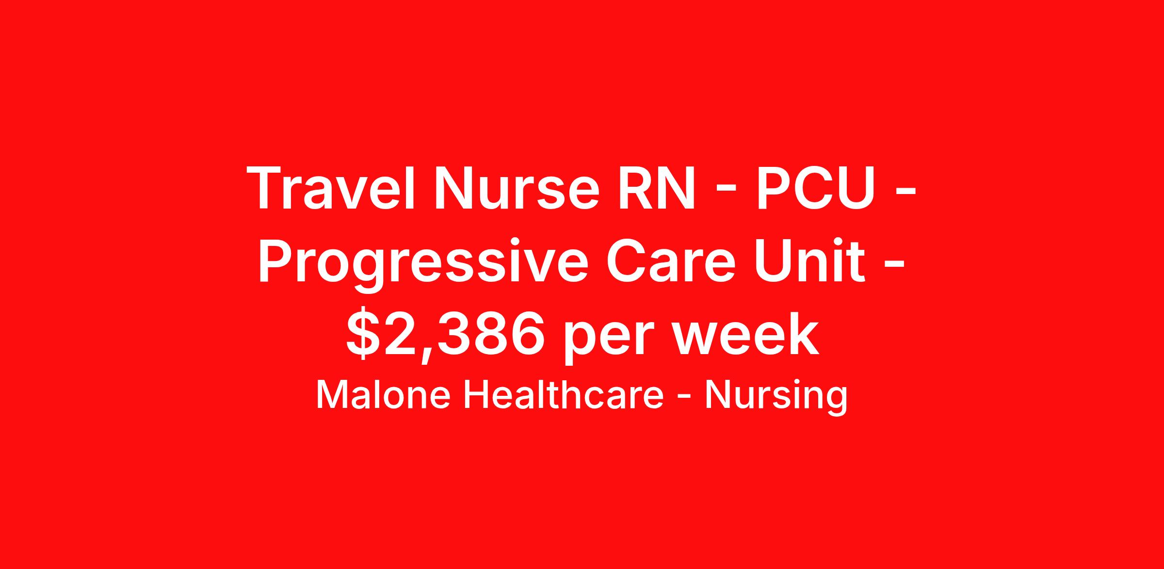 Malone Healthcare - Nursing is seeking a travel nurse RN PCU - Progressive Care Unit for a travel nursing job in Omaha, Nebraska. Job Description & Requirements Specialty: PCU - Progressive Care Unit Discipline: RN Start Date: 03/30/2026 Duration: 13 weeks 36 hours per week Shift: 12 hours, nights Employment Type: Travel Beds: 35. - Ratios: 1:4-5. - Common diagnoses/Types of patients: Adults and geriatrics, Cardiac, nephrology, stokes, DM, continuous EEG monitoring. About Malone Healthcare - Nursing With a commitment to providing a higher standard of service and experience in patient care, Malone Healthcare places expert nurses and allied health professionals in rewarding careers throughout the United States. As a leading healthcare staffing agency, Malone’s focus on compliance and integrity translates to a seamless experience for our team members and partner facilities. When you work with Malone Healthcare, you can rely on over 50 years of proven experience placing exceptional professionals in quality healthcare settings. Benefits Weekly pay Holiday Pay Guaranteed Hours Continuing Education 401k retirement plan Pet insurance Referral bonus Medical benefits Dental benefits Vision benefits License and certification reimbursement Life insurance