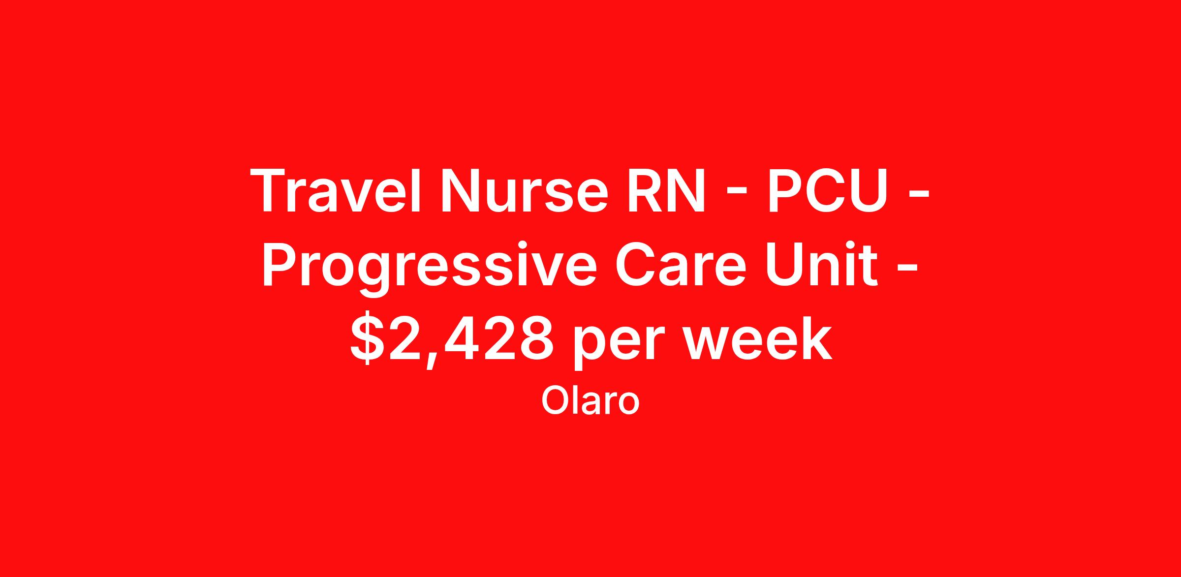 Travel Nurse RN - PCU - Progressive Care Unit - $2,428 per week