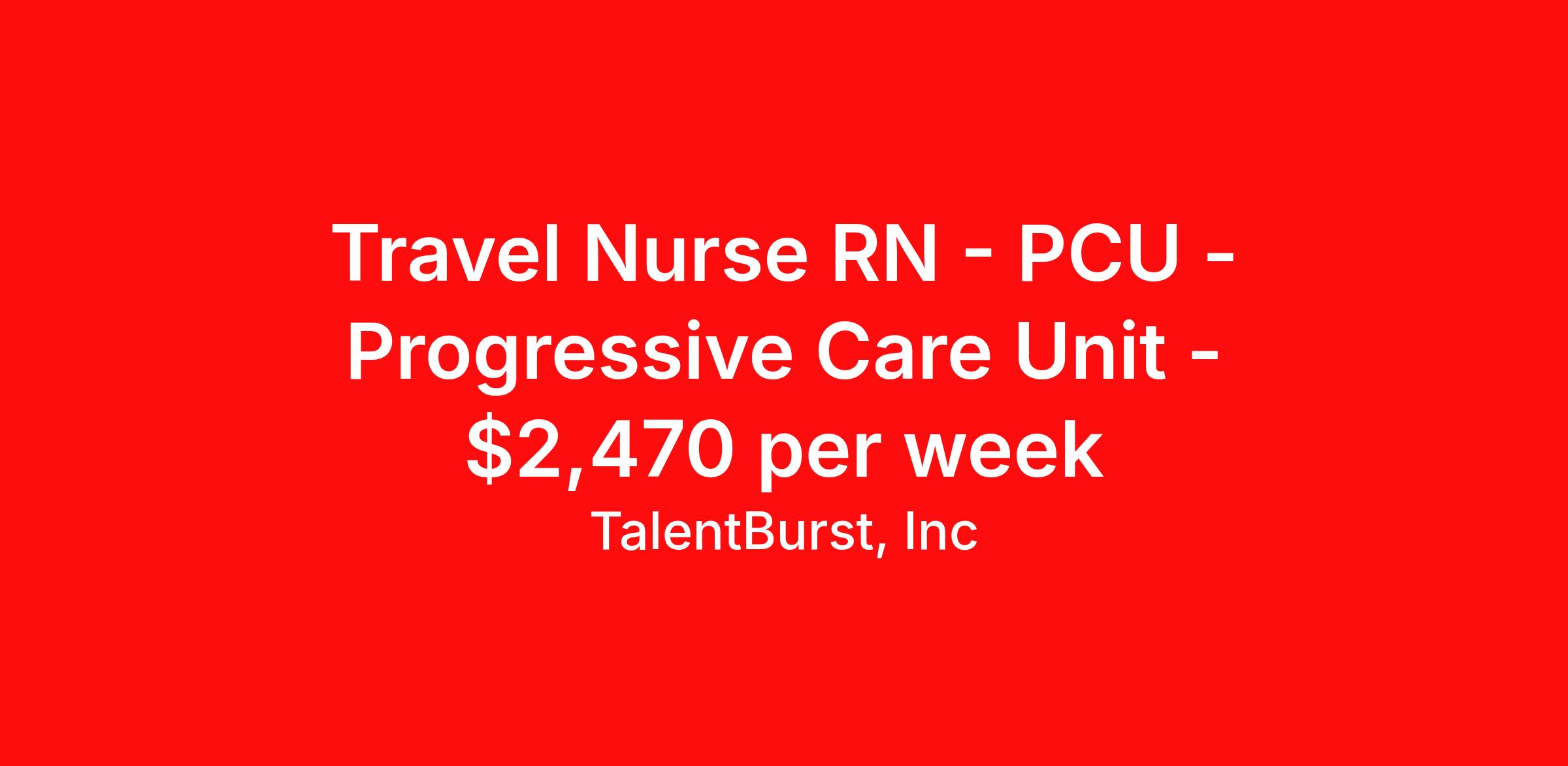 Travel Nurse RN - PCU - Progressive Care Unit - $2,470 per week