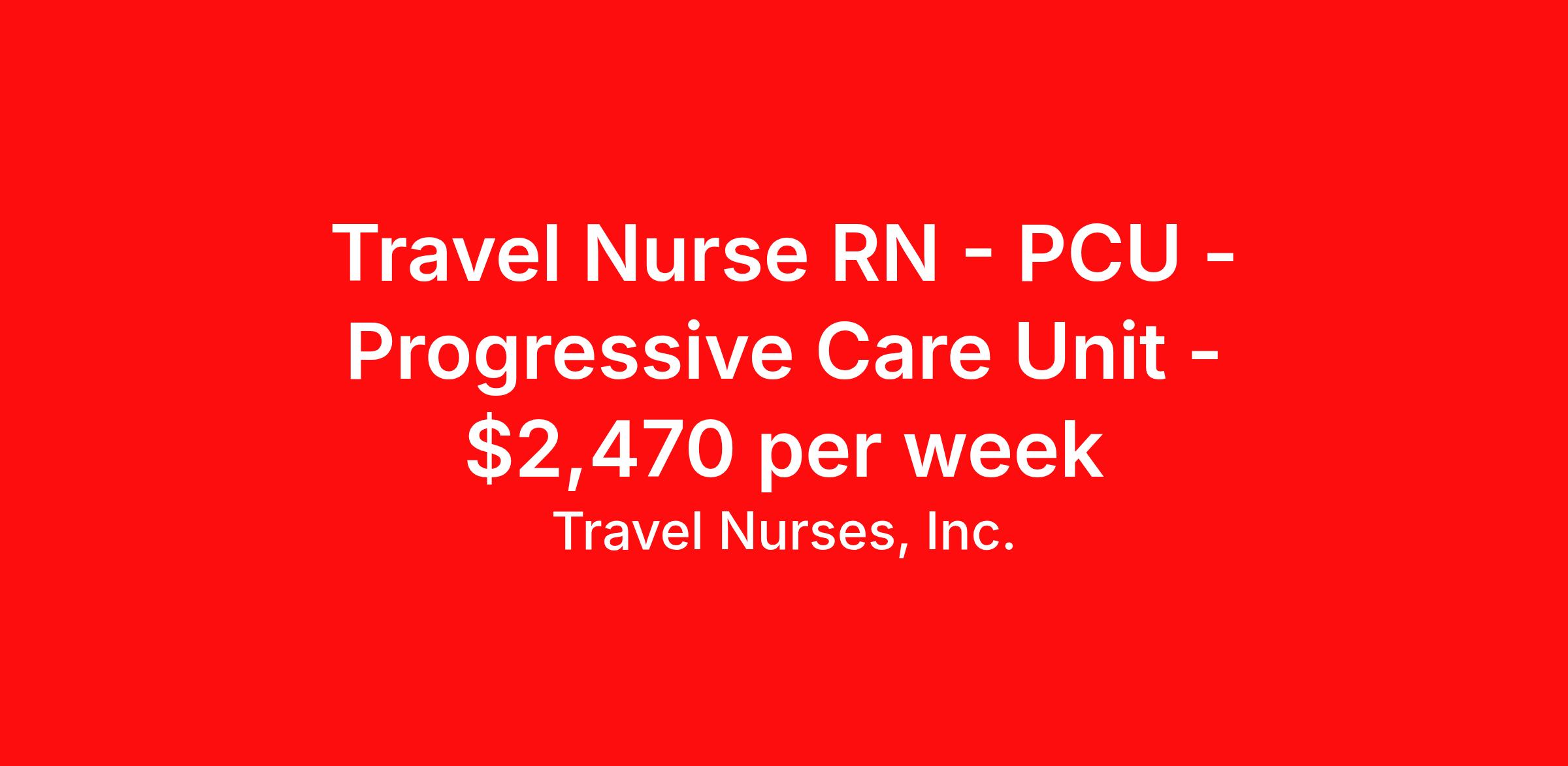 Travel Nurses, Inc. is seeking a travel nurse RN PCU - Progressive Care Unit for a travel nursing job in Cincinnati, Ohio. Job Description & Requirements Specialty: PCU - Progressive Care Unit Discipline: RN Start Date: 04/13/2026 Duration: 13 weeks 36 hours per week Shift: 12 hours Employment Type: Travel Travel Nurses, Inc. Job ID 309472. Pay package is based on 12 hour shifts and 36 hours per week (subject to confirmation) with tax-free stipend amount to be determined. Posted job title: ECMO Specialist Registered Nurse About Travel Nurses, Inc. Travel Nurses, Inc. is a leading healthcare staffing agency that provides healthcare professionals with opportunities to work across the country. Founded by nurses in 1988, TNI has more than 30 years of experience in the industry. The agency initially focused on staffing operating room settings in the MidSouth. However, this quickly evolved to encompass all nursing specialties and allied health fields nationwide. At the heart of our mission is a profound respect for nurses, whom we consider the cornerstone of healthcare. This acknowledgment extends beyond the nursing profession alone. Travel Nurses, Inc. now proudly embraces a wide array of healthcare professionals, recognizing their crucial roles in our collective mission. Travel Nurses, Inc. is dedicated to providing comprehensive support and opportunities that will help facilitate complete career mobility in the healthcare field. Our commitment to transparency ensures that all professionals, not just nurses, can confidently accept any assignment without financial uncertainties. We prioritize our professionals’ well-being with comprehensive benefits packages, including day-one healthcare coverage, competitive salaries, bonuses and incentives. This underscores our unwavering commitment to offering the best possible rewards and support for all the professionals we serve. Benefits Weekly pay Continuing Education 401k retirement plan Wellness and fitness programs Mileage reimbursement Referral bonus Employee assistance programs Medical benefits Dental benefits Vision benefits Benefits start day 1 License and certification reimbursement Life insurance Retention bonus