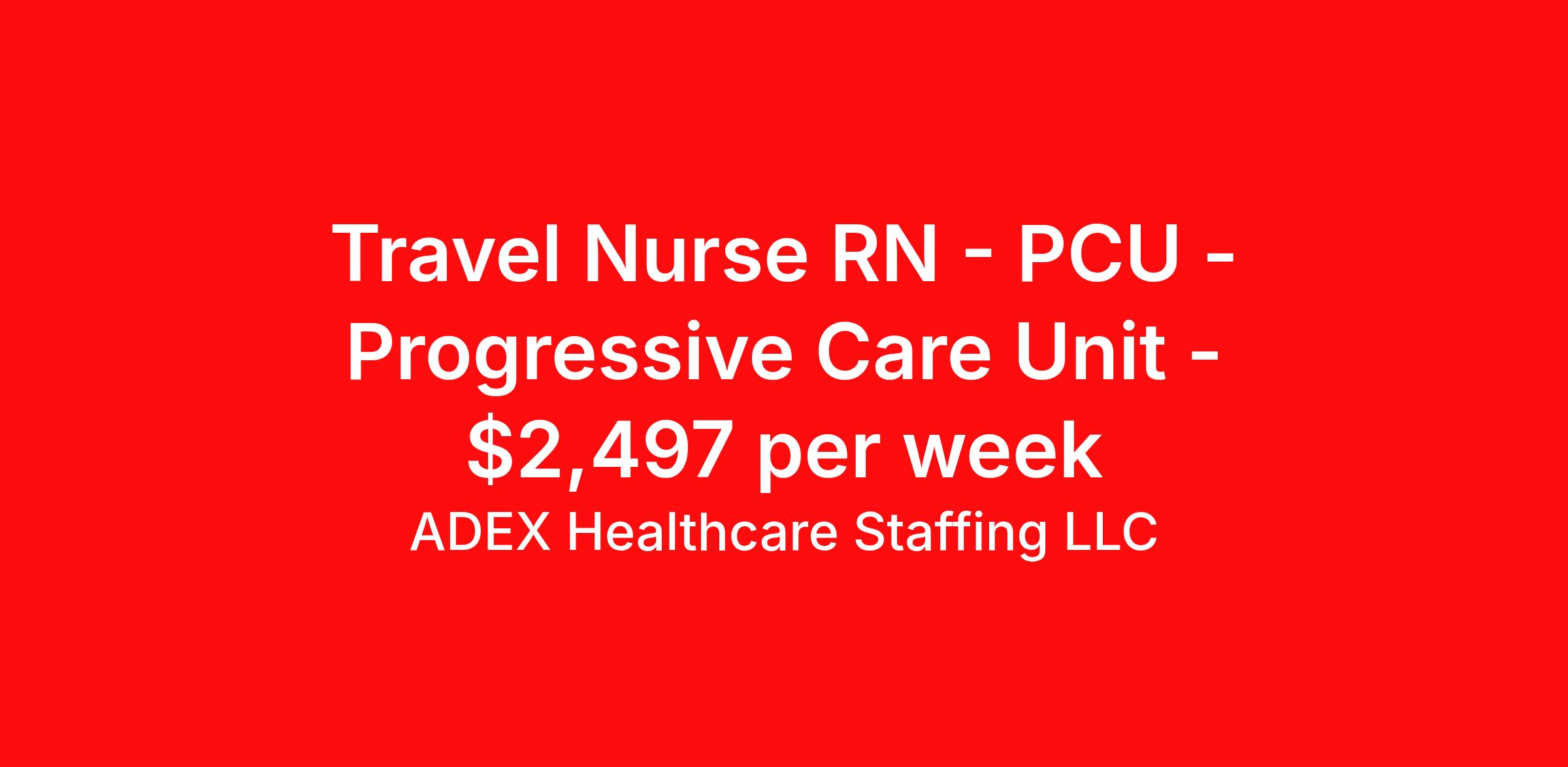 ADEX Healthcare Staffing LLC is seeking a travel nurse RN PCU - Progressive Care Unit for a travel nursing job in Lebanon, New Hampshire. Job Description & Requirements Specialty: PCU - Progressive Care Unit Discipline: RN Start Date: 04/13/2026 Duration: 13 weeks 36 hours per week Shift: 12 hours, nights Employment Type: Travel RN Position Job Notes: Travel or Local Registered Nurse needed for ASAP start. A minimum of 2 years of recent hospital bedside experience is required. Candidates must be able to start within 5 weeks. Opportunity for extension upon successful completion of the initial assignment. $750 referral bonus available. Opportunity: RN - PCU Stepdown Job Details: • Work day/night rotation schedule with 36 hours per week • On-call responsibilities required • Work in 10-bed Progressive Care Unit • Care for patients with neuromuscular disorders, meningitis, traumatic brain injury, and spinal cord injuries • Manage post-surgical patients including tumor resections (brain and spine), spinal surgery, and head and neck cancer cases • Handle Normal Pressure Hydrocephalus (NPH) trials with lumbar drains • Required experience with arterial lines, ventriculostomies, subdural drains, and lumbar drains • Perform hemodynamic monitoring and invasive BP monitoring through arterial lines • Manage Bi-PAP/C-PAP and trach C-PAP patients on ventilators • Administer low dose pressors, vasoactive medications, and inotropes • Handle Mannitol and 3% saline administration • Care for patients with tracheostomies and complex wounds • Manage various lines, tubes, and drains for post-surgical patients • Work with Primary Stroke Center patients Facility: This medical center operates a specialized 10-bed Progressive Care Unit that serves as a Primary Stroke Center, providing comprehensive care for complex neurological and neurosurgical patients. The facility specializes in treating patients with neuromuscular disorders, traumatic brain injuries, spinal cord injuries, and various surgical cases including brain and spine tumor resections. The unit is equipped with advanced monitoring technology and provides high-level care for patients requiring specialized neurological interventions and post-surgical management. Location: Lebanon, NH Lebanon offers a perfect blend of small-town charm and access to outdoor recreation in the beautiful Upper Valley region of New Hampshire. The area provides excellent quality of life with proximity to skiing, hiking, and the Connecticut River, while being part of a vibrant healthcare community in the region. Adex Job ID 153367. Pay package is based on 12 hour shifts and 36 hours per week (subject to confirmation) with tax-free stipend amount to be determined. About ADEX Healthcare Staffing LLC ADEX has been placing healthcare professionals across the US since 2004. Originally founded in Atlanta, GA, the company's headquarters are now located in Tampa, FL. JCAHO certified since 2009. Benefits Referral bonus