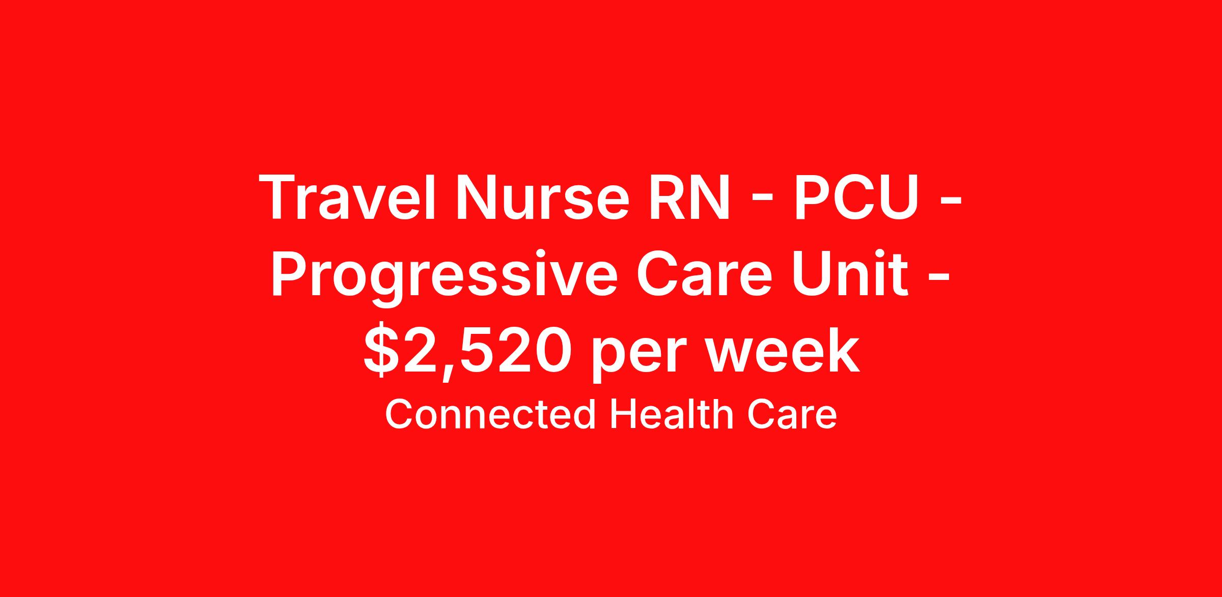 Connected Health Care is seeking a travel nurse RN PCU - Progressive Care Unit for a travel nursing job in Waukesha, Wisconsin. Job Description & Requirements Specialty: PCU - Progressive Care Unit Discipline: RN Start Date: 04/07/2026 Duration: 13 weeks 36 hours per week Shift: 12 hours Employment Type: Travel Travel/Contract ICU Stepdown Registered Nurse Competitive WEEKLY Pay for Qualified Candidates! Connected Health Care is seeking a compassionate and experienced Travel/Contract ICU Stepdown Registered Nurse for an immediate opportunity in WI. Whether you are looking to take your next adventure across the country or simply looking for a new contract opportunity close to home, our team is committed to finding the perfect opportunity for you. Job Description & Requirements: Position: Travel/Contract ICU Stepdown Registered Nurse Discipline: Registered Nurse Specialty/Department: Step Down Unit Duration: 13 weeks Benefits What To Expect From The Connected Team: Weekly, On time Pay Access to exclusive travel/contract assignments through our dedicated team at Connected Health Care Quick Offers and submittals through direct relationships with partners and facilities in all 50 states Weekly, On time Pay Holiday Overtime Rates that are typically 50% higher than our competitors Premium Health Benefits starting on the first day of your assignment 401K Plans with generous matching programs Paid Housing or generous housing allowances in the form of stipends Paid Time Off and Paid Sick Time Referral Bonuses ranging from $500 - $1,500 depending on the role Completion Bonuses for every assignment Reimbursements for Travel, Licensure, Relocation, and other expenses when applicable A dedicated team who care, with 24/7 support If you're ready to elevate your career while enjoying the flexibility of travel, apply now and let our team connect you to exciting opportunities across the nation! *Note: Per Diem Hours are NOT guaranteed on a weekly basis. Connected Healthcare Job ID 174705. Pay package is based on 12 hour shifts and 36 hours per week (subject to confirmation) with tax-free stipend amount to be determined. Posted job title: Travel/Contract ICU Stepdown Registered Nurse About Connected Health Care Connected Health Care is a nationally recognized healthcare recruiting and staffing agency specializing in travel nursing, travel allied health, interim leadership, per-diem staffing, and permanent placement. Our team of professional account managers, recruits, and credentialists are focused on providing you with the most fulfilling career path that aligns with your personal goals, whether you are traveling with us for a season or looking for a permanent place to call home. Benefits Weekly pay Holiday Pay Guaranteed Hours Continuing Education 401k retirement plan Company provided housing options Cancelation protection Mileage reimbursement Referral bonus Employee assistance programs Medical benefits Dental benefits Vision benefits Benefits start day 1 License and certification reimbursement