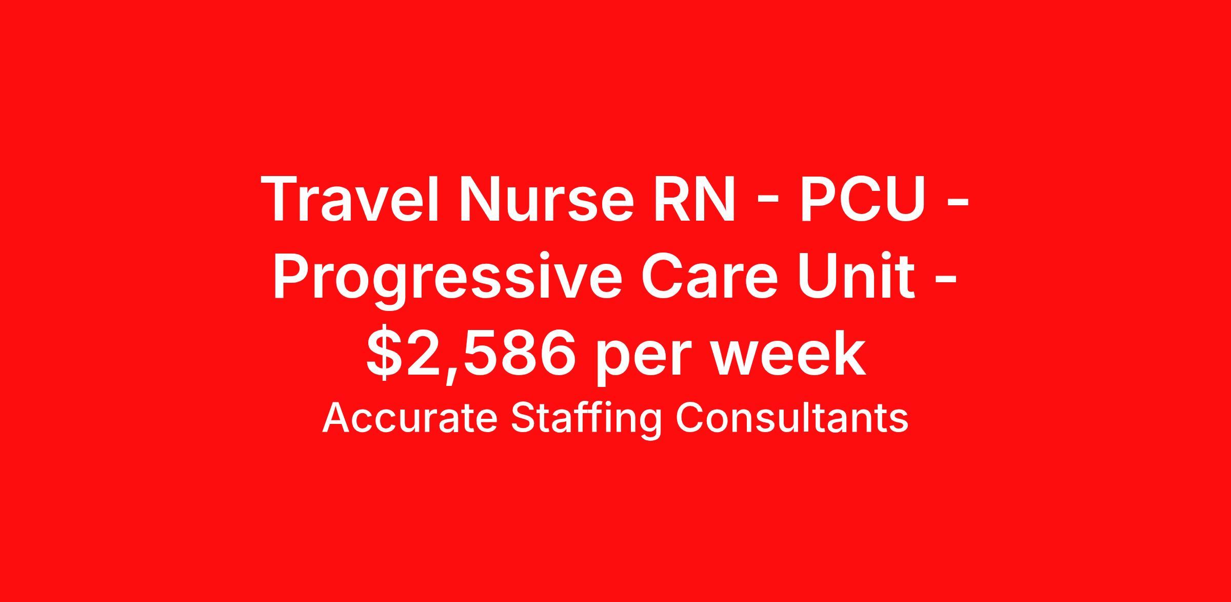 Accurate Staffing Consultants is seeking a travel nurse RN PCU - Progressive Care Unit for a travel nursing job in Winston-Salem, North Carolina. Job Description & Requirements Specialty: PCU - Progressive Care Unit Discipline: RN Start Date: 04/13/2026 Duration: 13 weeks 40 hours per week Shift: 10 hours, nights Employment Type: Travel AccurateStaffing Job ID 4258. Pay package is based on 10 hour shifts and 40 hours per week (subject to confirmation) with tax-free stipend amount to be determined. Posted job title: RN - PCU
