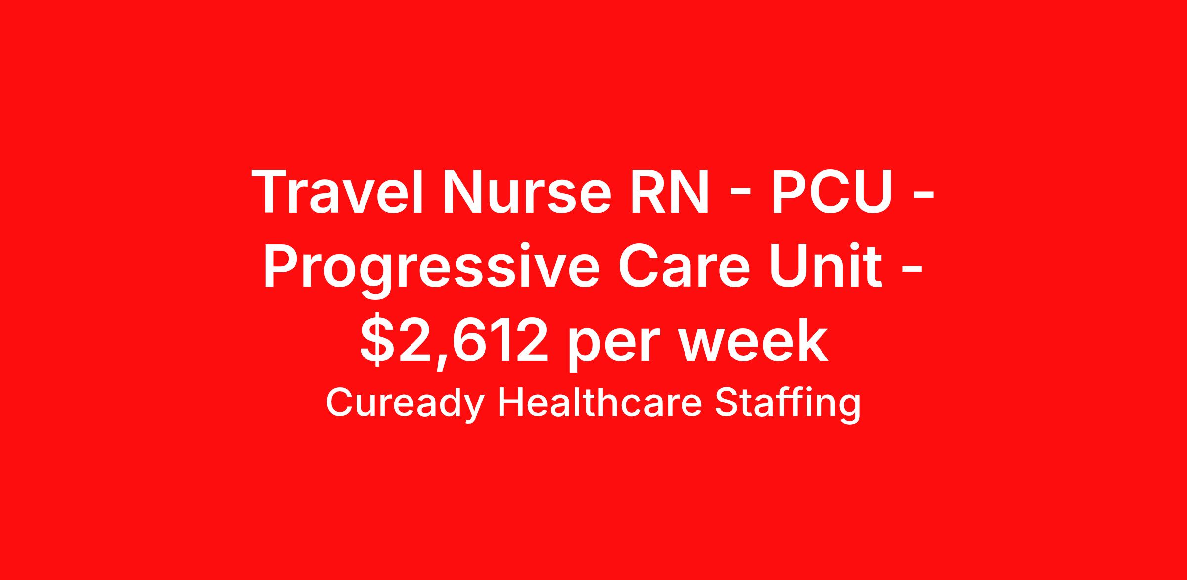 Cuready Healthcare Staffing is seeking a travel nurse RN PCU - Progressive Care Unit for a travel nursing job in Albuquerque, New Mexico. Job Description & Requirements Specialty: PCU - Progressive Care Unit Discipline: RN Start Date: 04/13/2026 Duration: 13 weeks 36 hours per week Shift: 12 hours, nights Employment Type: Travel Two years of experience required. BLS, ACLS and NIHSS required. Cuready Healthcare Staffing Job ID 17970788. Pay package is based on 12 hour shifts and 36 hours per week (subject to confirmation) with tax-free stipend amount to be determined. About Cuready Healthcare Staffing At Cuready Healthcare Staffing, our recruiters are experienced healthcare professionals who have worked in sonography, radiology, respiratory therapy and more. We understand your day-to-day needs and will provide you with the perfect blend of skills, talent, and efficiency. Our unique approach to travel healthcare solutions help medical teams and healthcare professionals meet their collective and individual needs. Being a healthcare staffing service in the US since 1999, we specialize in connecting the nation's top medical professionals with healthcare facilities throughout the country. We can provide experienced health care professionals for temporary, temp-to-perm, and permanent placement services. Benefits Medical benefits Dental benefits Vision benefits Referral bonus