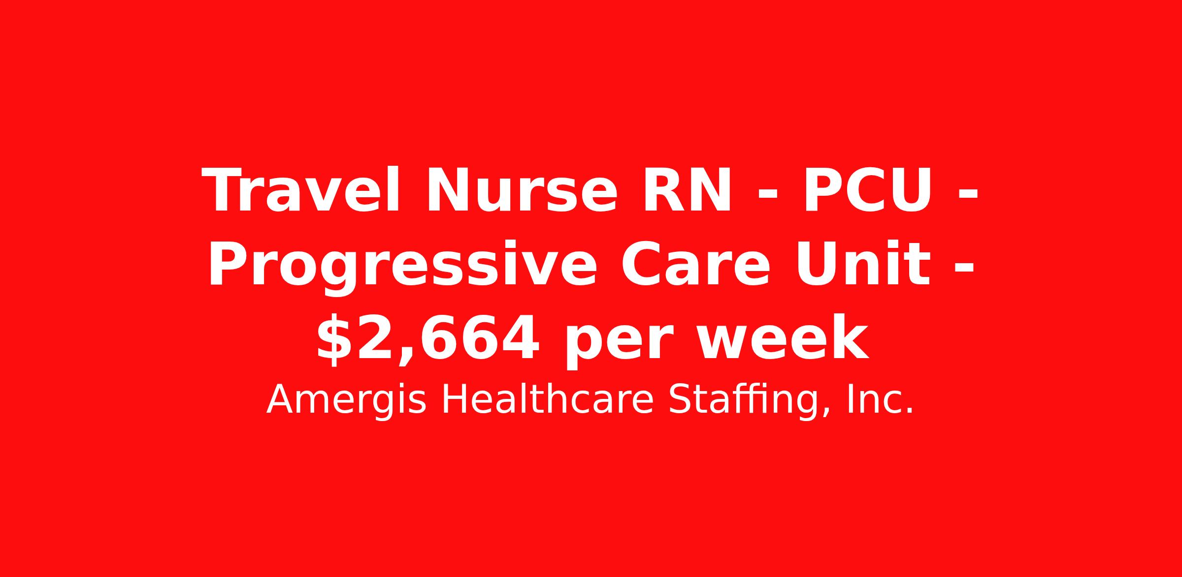 Amergis Healthcare Staffing, Inc. is seeking a travel nurse RN PCU - Progressive Care Unit for a travel nursing job in Washington, District of Columbia. Job Description & Requirements Specialty: PCU - Progressive Care Unit Discipline: RN Duration: 13 weeks 36 hours per week Shift: 12 hours Employment Type: Travel The Progressive Care Unit RN, as a professional practitioner, assumes the responsibility and accountability for delivering patient care to telemetry/progressive care patients. The Progressive Care Unit RN demonstrates the ability to make clinical judgments in an effective and efficient manner with supervision. This individual employs critical thinking and performance ability in the coordinator of patient care, consistently performs according to nursing standards, and is accountable in managing patient care and assisting others in the management of patient care. The Progressive Care Unit RN is sometimes also called a step-down nurse, cardiac stepdown, neuro stepdown, surgical stepdown and in some medical centers, the PCU is also known as a transition or intermedia unit. Minimum Requirements: Current Registered Nurse License for the state in which the nurse practices One year prior professional nursing experience preferred with one year progressive care unit experience preferred Current CPR if applicable TB questionnaire, PPD or chest x-ray if applicable Current Health certificate (per contract or state regulation) Must meet all federal, state and local requirements Must be at least 18 years of age Benefits At Amergis, we firmly believe that our employees are the heartbeat of our organization and we are happy to offer the following benefits: Competitive pay & weekly paychecks Health, dental, vision, and life insurance 401(k) savings plan Awards and recognition programs *Benefit eligibility is dependent on employment status. About Amergis Amergis, formerly known as Maxim Healthcare Staffing, has served our clients and communities by connecting people to the work that matters since 1988. We provide meaningful opportunities to our extensive network of healthcare and school-based professionals, ready to work in any hospital, government facility, or school. Through partnership and innovation, Amergis creates unmatched staffing experiences to deliver the best workforce solutions. Amergis is an equal opportunity/affirmative action employer. All qualified applicants will receive consideration for employment without regard to sex, gender identity, sexual orientation, race, color, religion, national origin, disability, protected Veteran status, age, or any other characteristic protected by law. Amergis Job ID 1107340. Pay package is based on 12 hour shifts and 36 hours per week (subject to confirmation) with tax-free stipend amount to be determined. Posted job title: Stepdown/Progressive Care RN Openings - Washington, D.C. About Amergis Healthcare Staffing, Inc. Amergis, formerly known as Maxim Healthcare Staffing, has served our clients and communities by connecting people to the work that matters since 1988. We provide meaningful opportunities to our extensive network of healthcare and school-based professionals, ready to work in any hospital, government facility, or school. Through partnership and innovation, Amergis creates unmatched staffing experiences to deliver the best workforce solutions.
