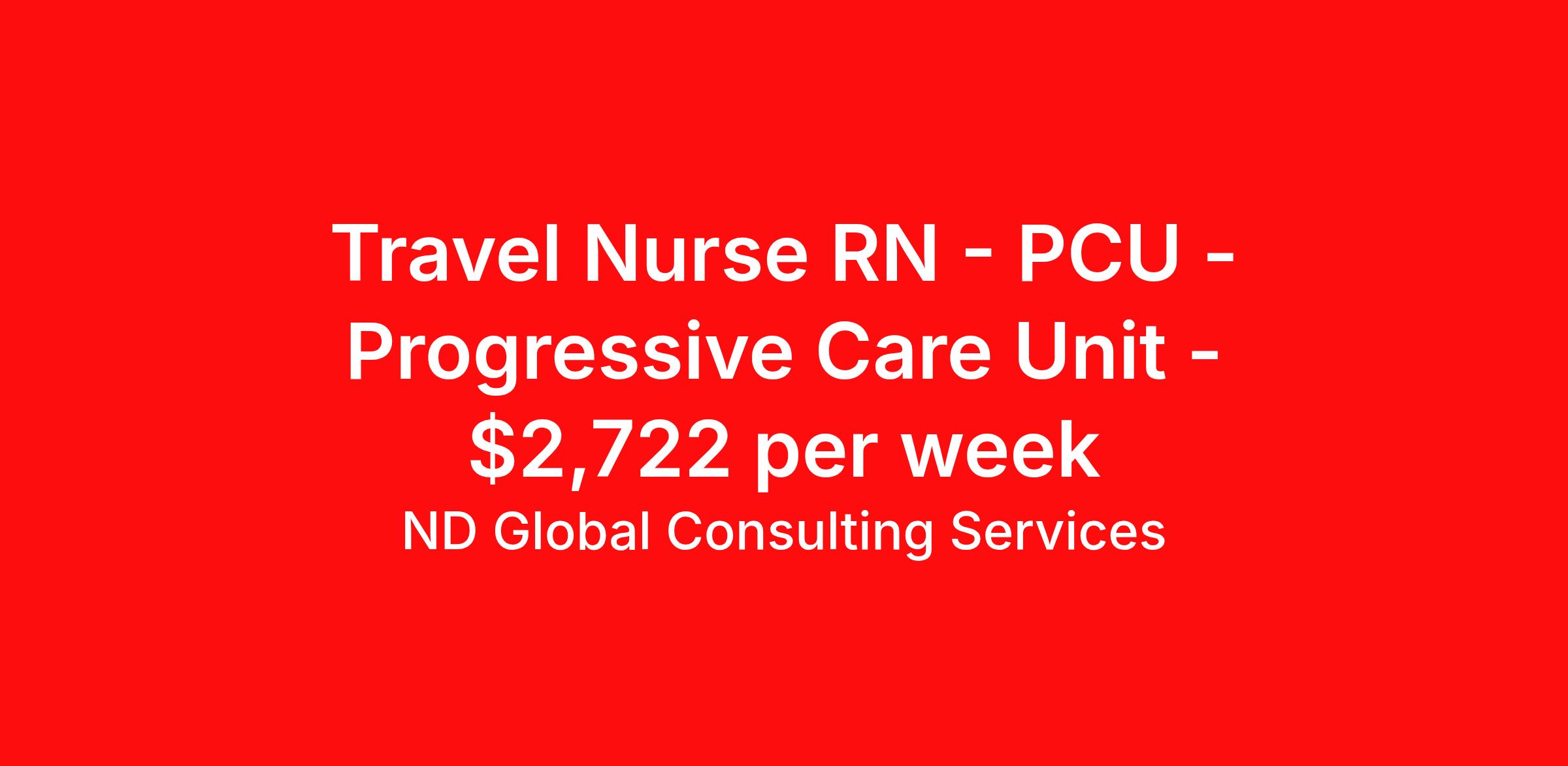 ND Global Consulting Services is seeking a travel nurse RN PCU - Progressive Care Unit for a travel nursing job in Utica, New York. Job Description & Requirements Specialty: PCU - Progressive Care Unit Discipline: RN Start Date: 03/29/2026 Duration: 13 weeks 36 hours per week Shift: 12 hours, days Employment Type: Travel Travel IMCU / PCU RN – Intermediate Care Unit New York, USA Contract Length: 13 Weeks Position Overview We are seeking an experienced IMCU / PCU Registered Nurse (RN) for a travel assignment in a high-acuity Intermediate Care Unit. The RN will provide care for patients requiring close monitoring and step-down level critical care. Shift Details Shift: Day Shift Scheduling: Block scheduling not guaranteed Floating: Required as needed Scrub Color: Navy Blue Travel / Local Policy Local candidates ( will be accepted at local pay rates Requirements Minimum 2 years of IMCU / PCU experience Travel experience required Active New York RN License (NURSYS verification required with all active RN licenses) AHA Certifications Required: BLS ACLS NIHSS Certification required EPIC EMR experience required Driver’s license with address matching candidate demographics Skills checklist matching specialty required RTO must be included at time of submission Unit Information Department: Intermediate Care Unit (IMCU) Total Beds: 64 beds Neuro Beds: 15 designated beds Patient Population Adults (18) Common Diagnoses Neurological conditions Cardiac conditions Trauma Respiratory issues (COPD) Diabetic Ketoacidosis (DKA) Sepsis Myocardial Infarction (MI) Cardiovascular step-down Post-operative patients Specialty Equipment Temporary Pacemaker Chest Tubes Arterial Lines (A-lines) BiPAP Neptune Vapo Ventilator Support Chronic ventilator patients (unable to wean) Respiratory Therapy team assists with vent management