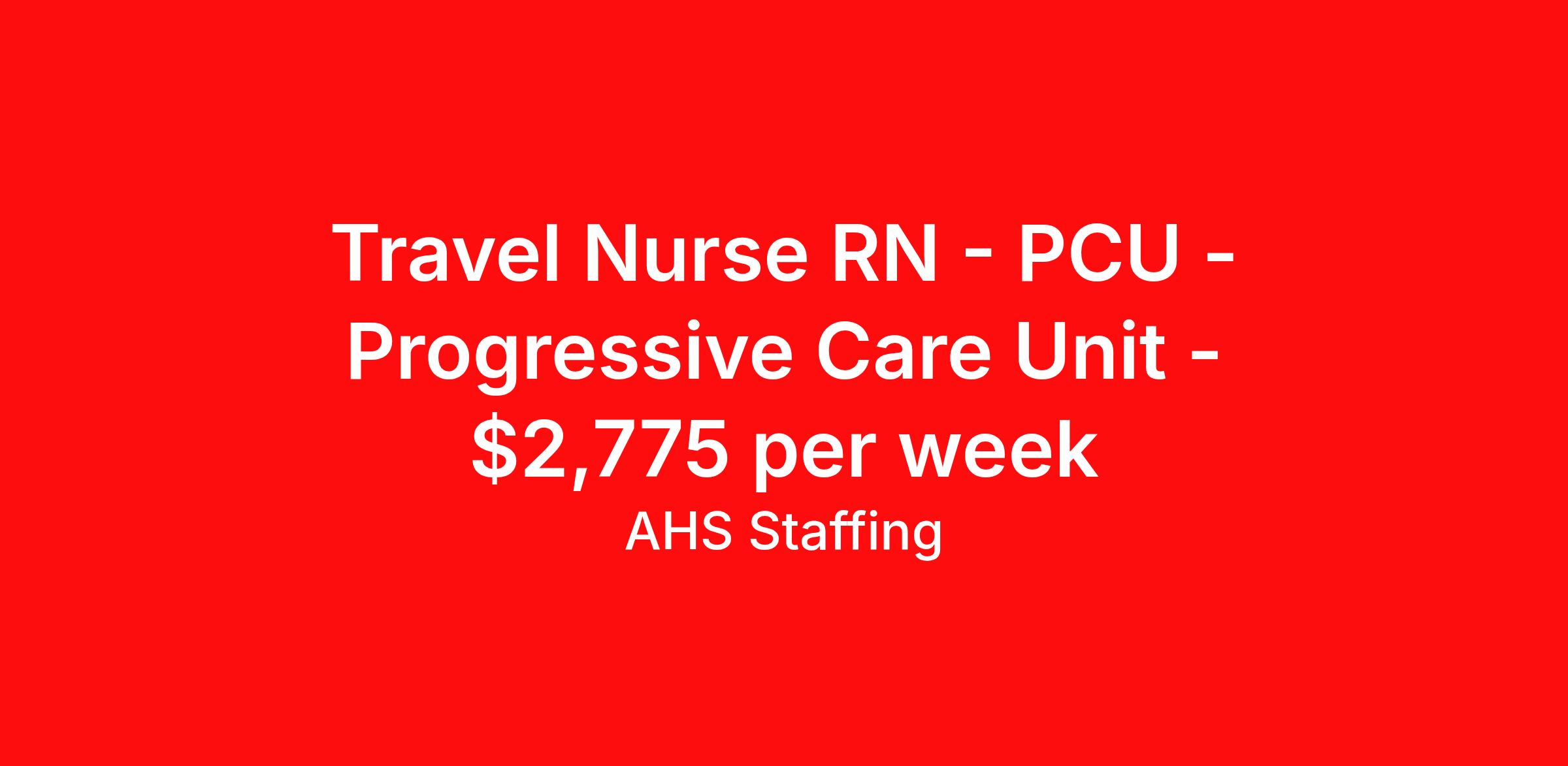 Travel Nurse RN - PCU - Progressive Care Unit - $2,775 per week