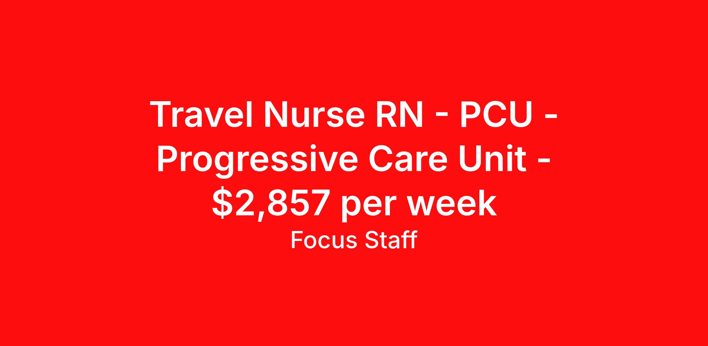Travel Nurse RN - PCU - Progressive Care Unit - $2,857 per week