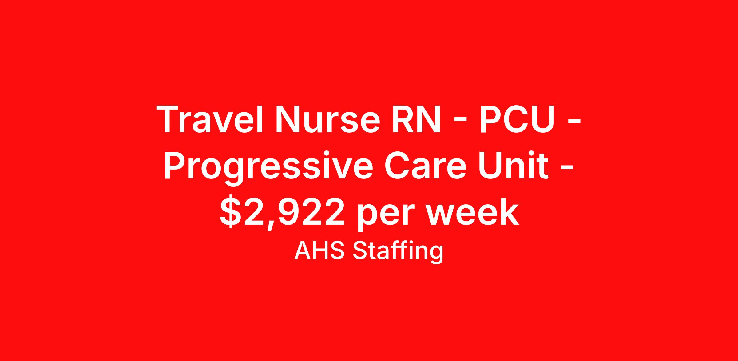 Travel Nurse RN - PCU - Progressive Care Unit - $2,922 per week