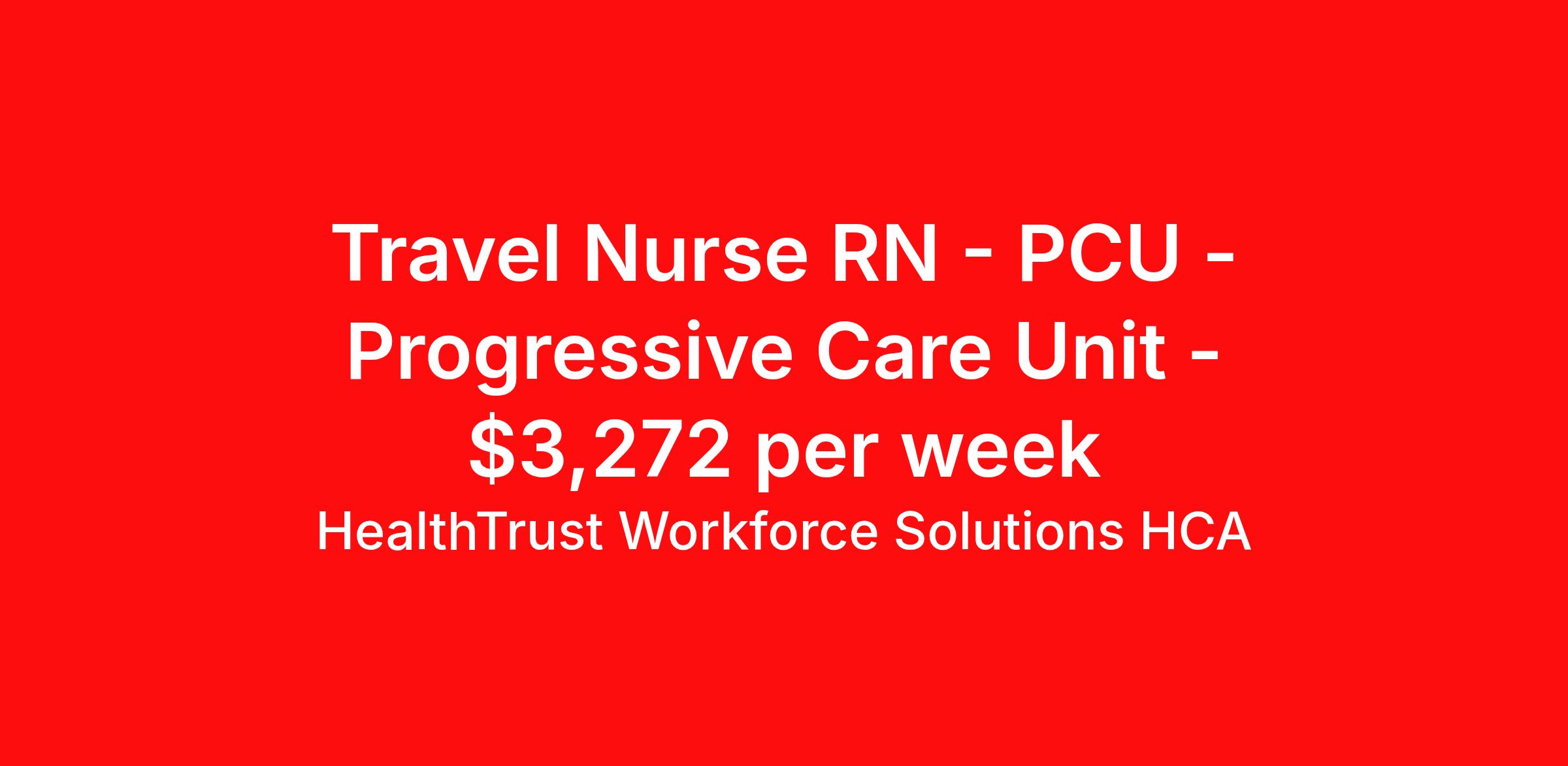 HealthTrust Workforce Solutions HCA is seeking a travel nurse RN PCU - Progressive Care Unit for a travel nursing job in Asheville, North Carolina. Job Description & Requirements Specialty: PCU - Progressive Care Unit Discipline: RN Duration: 13 weeks 48 hours per week Shift: 12 hours, days, nights Employment Type: Travel About HealthTrust Workforce Solutions HCA At HealthTrust Workforce Solutions, healthcare is not just about the four walls of a facility but about the people who provide and receive care. Our focus is on empowering healthcare professionals to deliver exceptional patient experiences by providing them with the necessary skills, tools, and support. We partner with healthcare facilities nationwide to ensure that the right professionals are in the right roles. We prioritize our clinicians by giving them a voice and access to opportunities to fulfill their mission of improving lives by providing quality patient care. We are committed to our core values of Trust, Innovation, Adaptability, Courage, and Accountability. We are dedicated to positively impacting the healthcare industry by providing first-priority access to more than 200,000 jobs nationwide to our healthcare professionals. Join us and be part of the HealthTrust family, where you can make a difference every day. We embrace our changing environment, and we maintain a culture that has a rich tradition of transforming itself to meet the challenges of the future. MISSION STATEMENT While putting great people in the right roles is essential, our mission is far greater. We want our clinicians to be part of the HealthTrust family, where healthcare professionals have a voice and are empowered with the right tools and opportunities to fulfill their personal mission of improving lives. Plus, as a preferred partner to thousands of top-performing hospitals, we provide our healthcare professionals with first-priority access to more than 200,000 jobs nationwide. Benefits Dental benefits Vision benefits Referral bonus Continuing Education Life insurance
