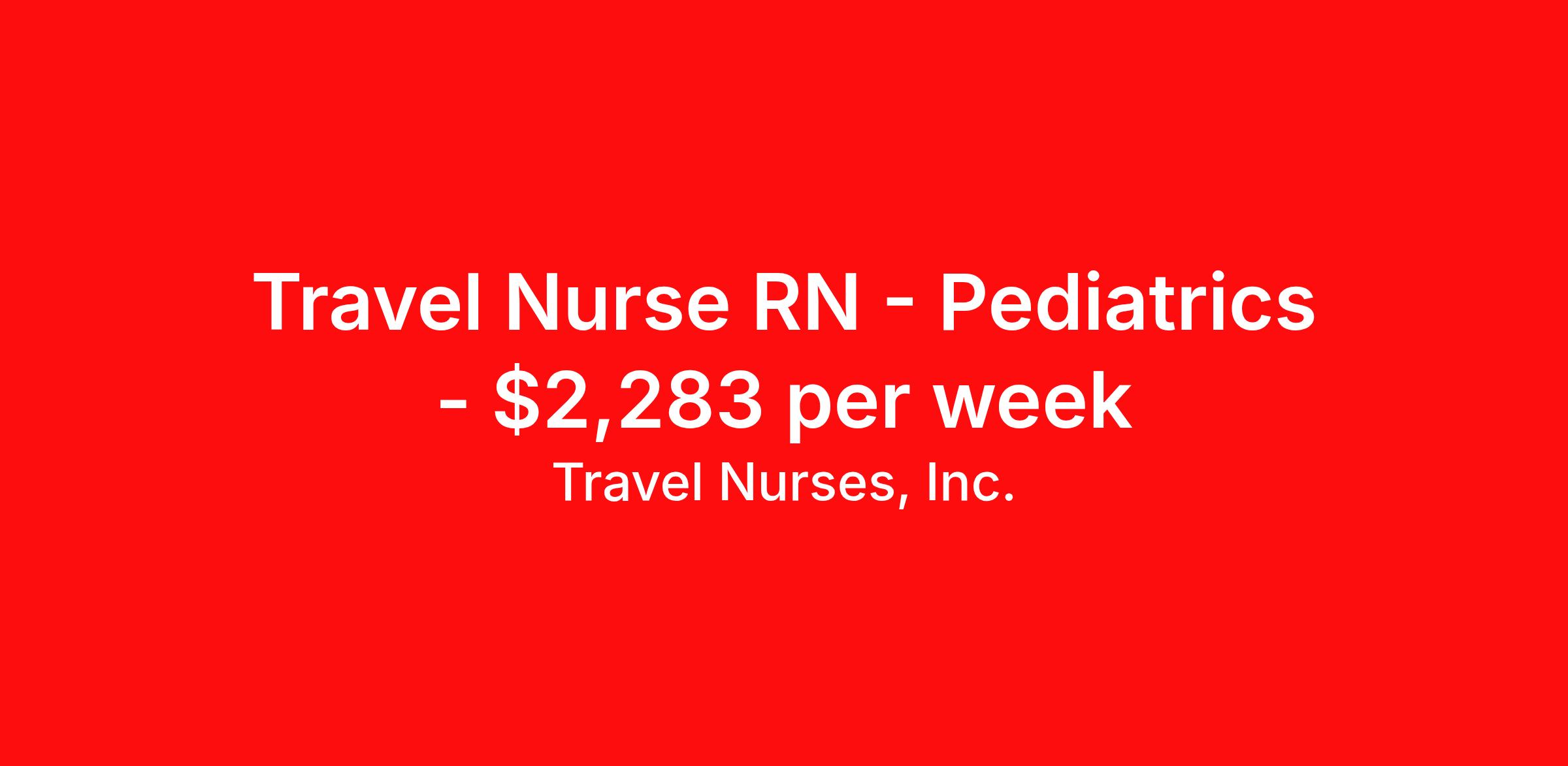 Travel Nurses, Inc. is seeking a travel nurse RN Pediatrics for a travel nursing job in Oklahoma City, Oklahoma. Job Description & Requirements Specialty: Pediatrics Discipline: RN Start Date: ASAP Duration: 13 weeks 36 hours per week Shift: 12 hours Employment Type: Travel Travel Nurses, Inc. Job ID 306137. Pay package is based on 12 hour shifts and 36 hours per week (subject to confirmation) with tax-free stipend amount to be determined. Posted job title: RN Medicine - Pediatrics - FS About Travel Nurses, Inc. Travel Nurses, Inc. is a leading healthcare staffing agency that provides healthcare professionals with opportunities to work across the country. Founded by nurses in 1988, TNI has more than 30 years of experience in the industry. The agency initially focused on staffing operating room settings in the MidSouth. However, this quickly evolved to encompass all nursing specialties and allied health fields nationwide. At the heart of our mission is a profound respect for nurses, whom we consider the cornerstone of healthcare. This acknowledgment extends beyond the nursing profession alone. Travel Nurses, Inc. now proudly embraces a wide array of healthcare professionals, recognizing their crucial roles in our collective mission. Travel Nurses, Inc. is dedicated to providing comprehensive support and opportunities that will help facilitate complete career mobility in the healthcare field. Our commitment to transparency ensures that all professionals, not just nurses, can confidently accept any assignment without financial uncertainties. We prioritize our professionals’ well-being with comprehensive benefits packages, including day-one healthcare coverage, competitive salaries, bonuses and incentives. This underscores our unwavering commitment to offering the best possible rewards and support for all the professionals we serve. Benefits Weekly pay Continuing Education 401k retirement plan Wellness and fitness programs Mileage reimbursement Referral bonus Employee assistance programs Medical benefits Dental benefits Vision benefits Benefits start day 1 License and certification reimbursement Life insurance Retention bonus