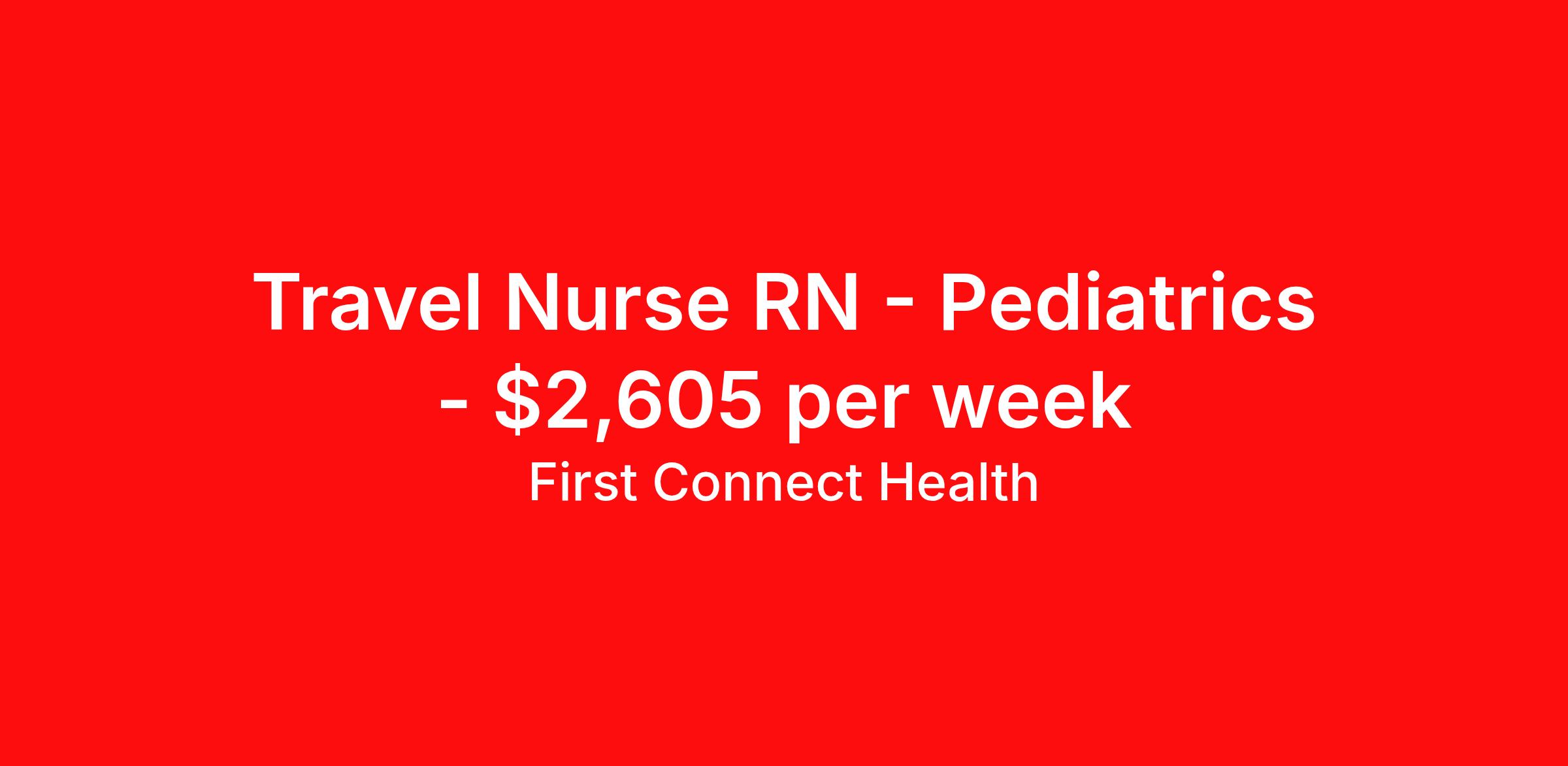 First Connect Health is seeking a travel nurse RN Pediatrics for a travel nursing job in Pittsfield, Massachusetts. Job Description & Requirements Specialty: Pediatrics Discipline: RN Start Date: 03/30/2026 Duration: 13 weeks 36 hours per week Shift: 12 hours, days Employment Type: Travel Hiring: RN – Pediatrics Location: Pittsfield, MA Assignment Length: 13 Weeks Shift: 12-Hour Days ⏱ Guaranteed Hours: 36 hrs/week Unit Details: Beds: 3 Patient Ratio: 1:3 Must float to Med/Surg or Post-Partum ✅ Requirements: 3 years of current Pediatric RN experience – Required Adult Med Surg experience – Preferred (for floating) Meditech Expanse experience – Strongly preferred BSN – Preferred Traveler must have their own vehicle Certifications: ACLS (AHA) BLS (AHA) PALS (AHA) License: Massachusetts RN License Ready for your next opportunity? Apply today and secure your spot before it fills! About First Connect Health At First Connect Health , we take pride in being a Joint Commission–certified healthcare staffing agency , headquartered in Newark, New Jersey. This prestigious certification is more than just a seal — it's a reflection of our commitment to excellence, safety, and quality in everything we do. By meeting the rigorous standards set by The Joint Commission, one of the most respected accrediting bodies in healthcare, we've demonstrated that our processes, compliance, and patient care standards are aligned with the highest levels of quality in the industry. But our dedication goes beyond certifications. Nurses choose First Connect Health because: ✅ Trust and Transparency: We foster honest communication, timely updates, and full transparency throughout your placement journey. ✅ Best Pay & Benefits: We offer industry-leading compensation packages, along with benefits that support your career goals. ✅ Flexibility & Choice: Whether you're seeking short-term assignments, long-term contracts, or local opportunities, we provide the flexibility to suit your preferences. ✅ Personalized Support: Our recruiters take the time to understand your needs, guiding you with care, respect, and responsiveness at every step. When you work with First Connect Health, you're not just another number — you're a valued professional. Join a team that’s focused on your success, your well-being, and your future in healthcare. Benefits Medical benefits Sick pay 401k retirement plan Weekly pay Referral bonus